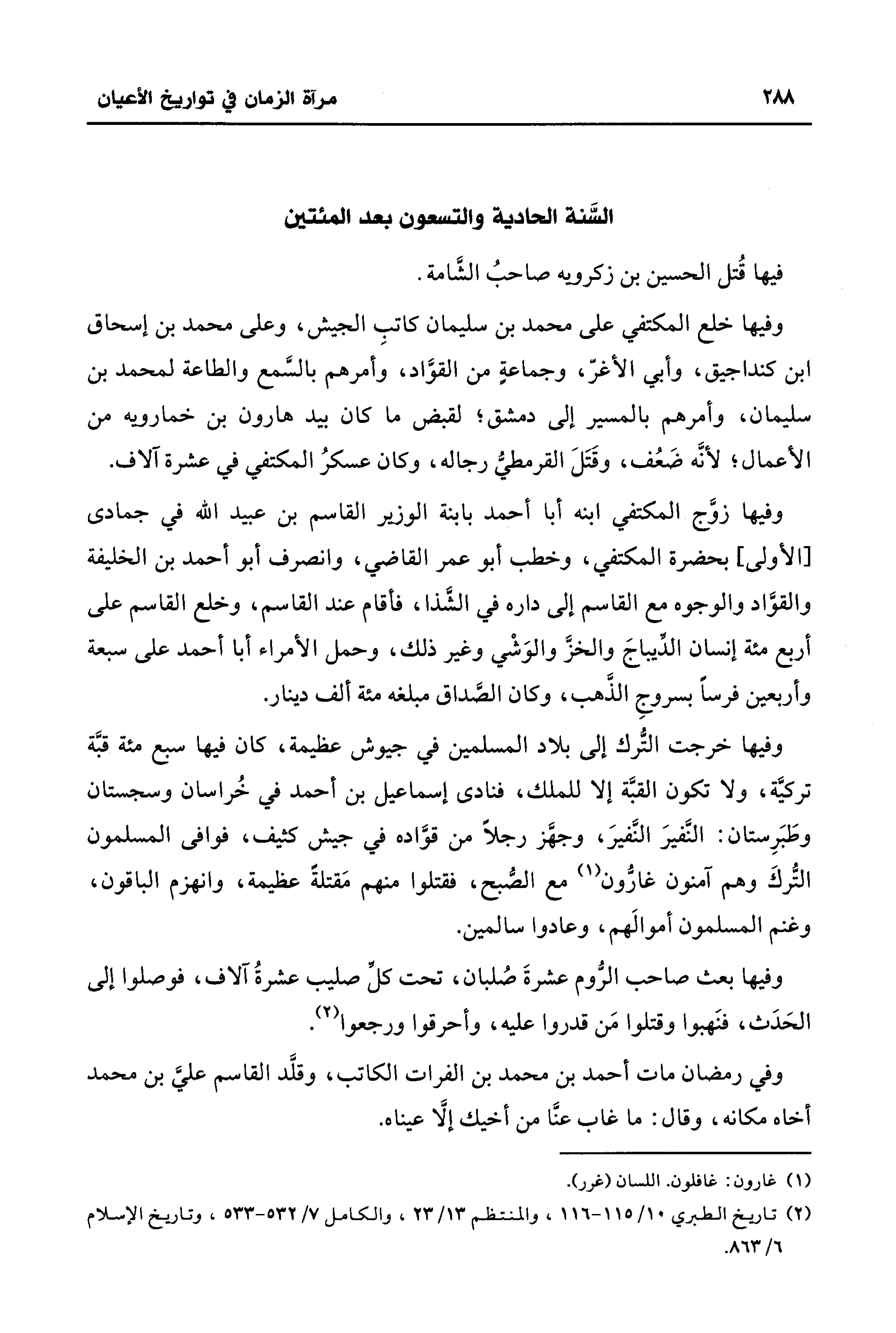 (¬2) تاريخ الطبري 10/ 115 - 116، والمنتظم 13/ 23، والكامل 7/ 532 - 533، وتاريخ الإِسلام 6/ 863.