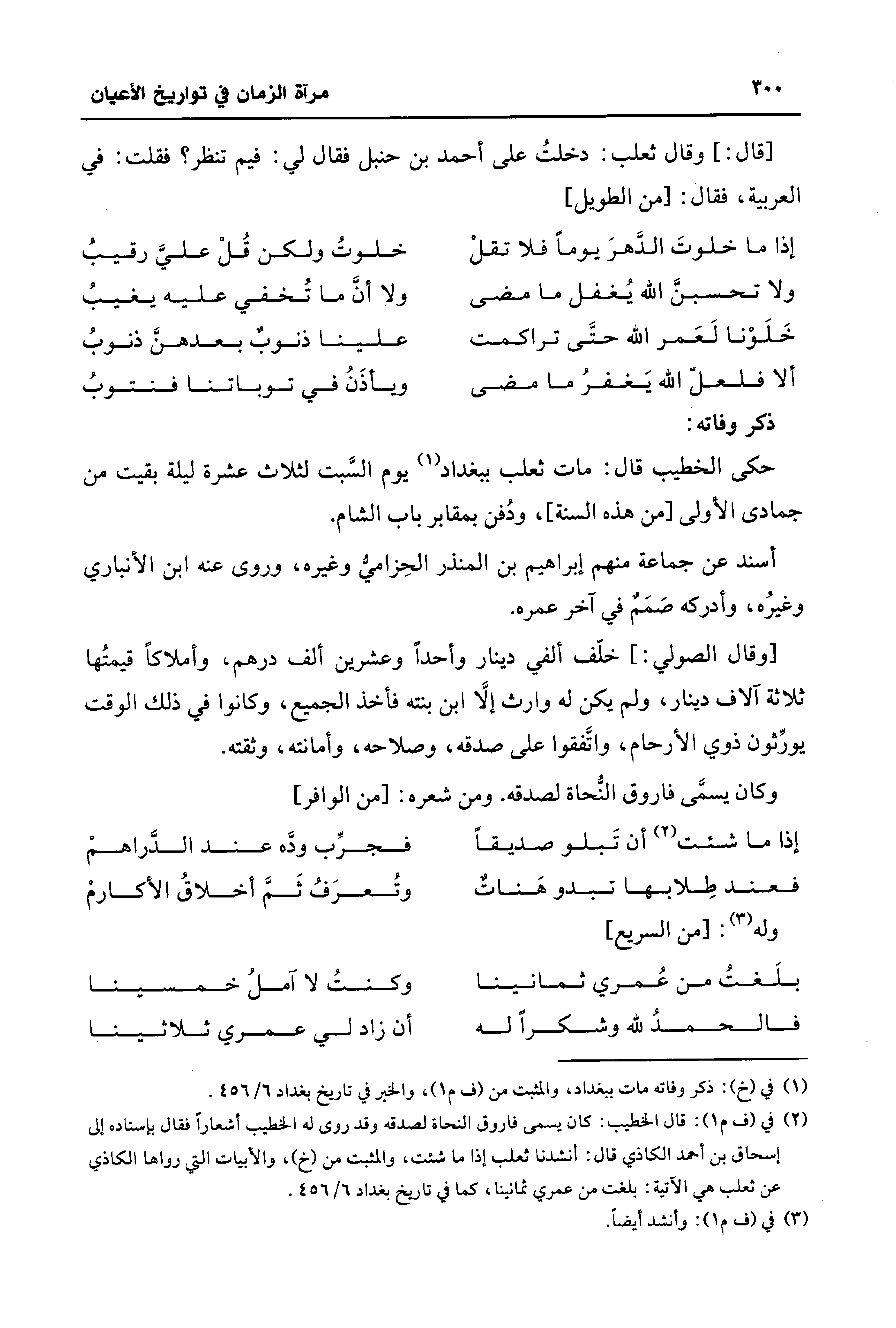 (¬2) في (ف م 1): قال الخَطيب: كان يسمى فاروق النحاة لصدقه وقد روى له الخَطيب أشعارًا فقال بإسناده إلى إسحاق بن أَحْمد الكاذي قال: أنشدنا ثعلب إذا ما شئت، والمثبت من (خ)، والأبيات التي رواها الكاذي عن ثعلب هي الآتية: بلغت من عمري ثمانينا، كما في تاريخ بغداد 6/ 456.
