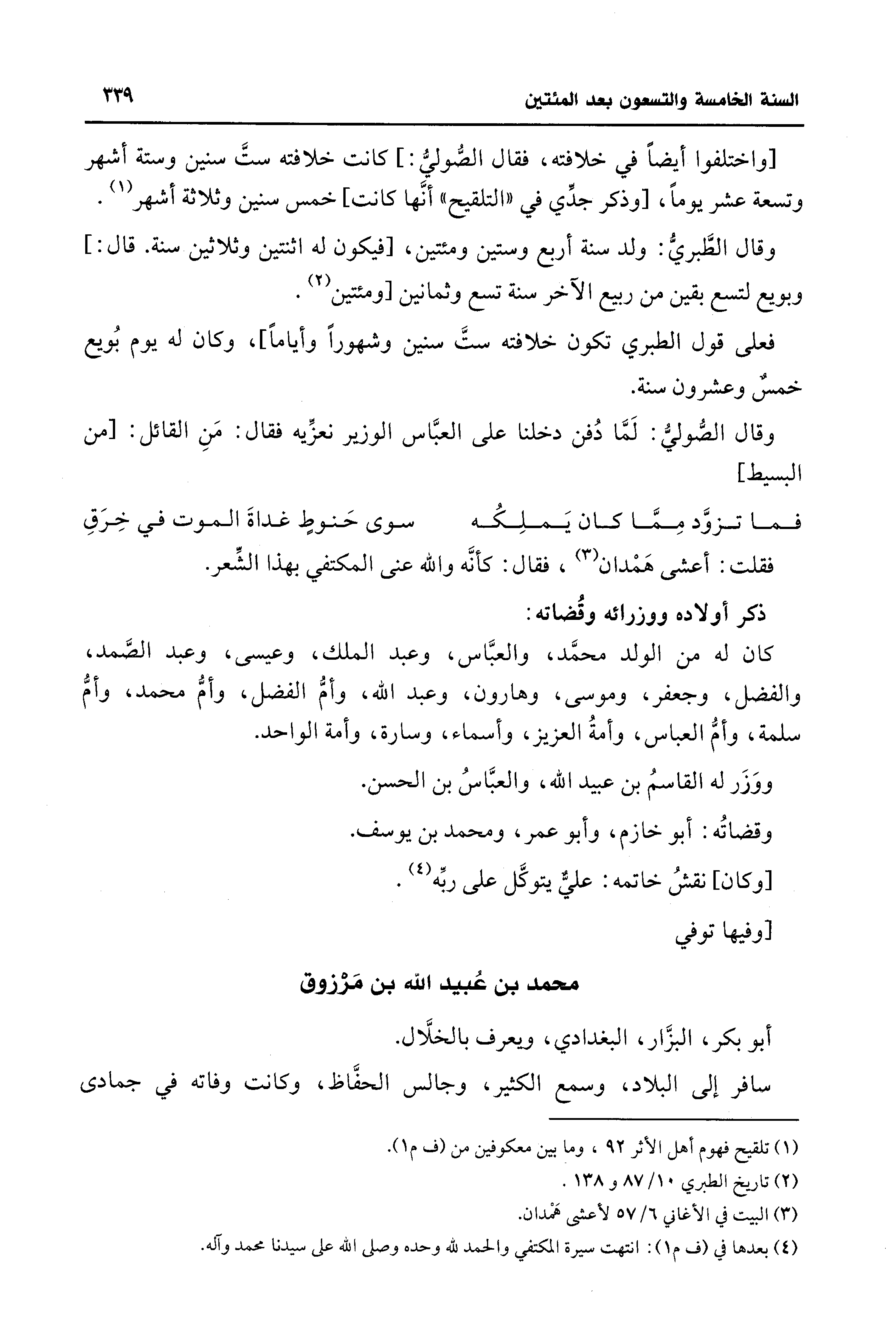 فقلت: أعشى هَمْدان (¬3)، فقال: كأنَّه والله عنى المكتفي بهذا الشِّعر.