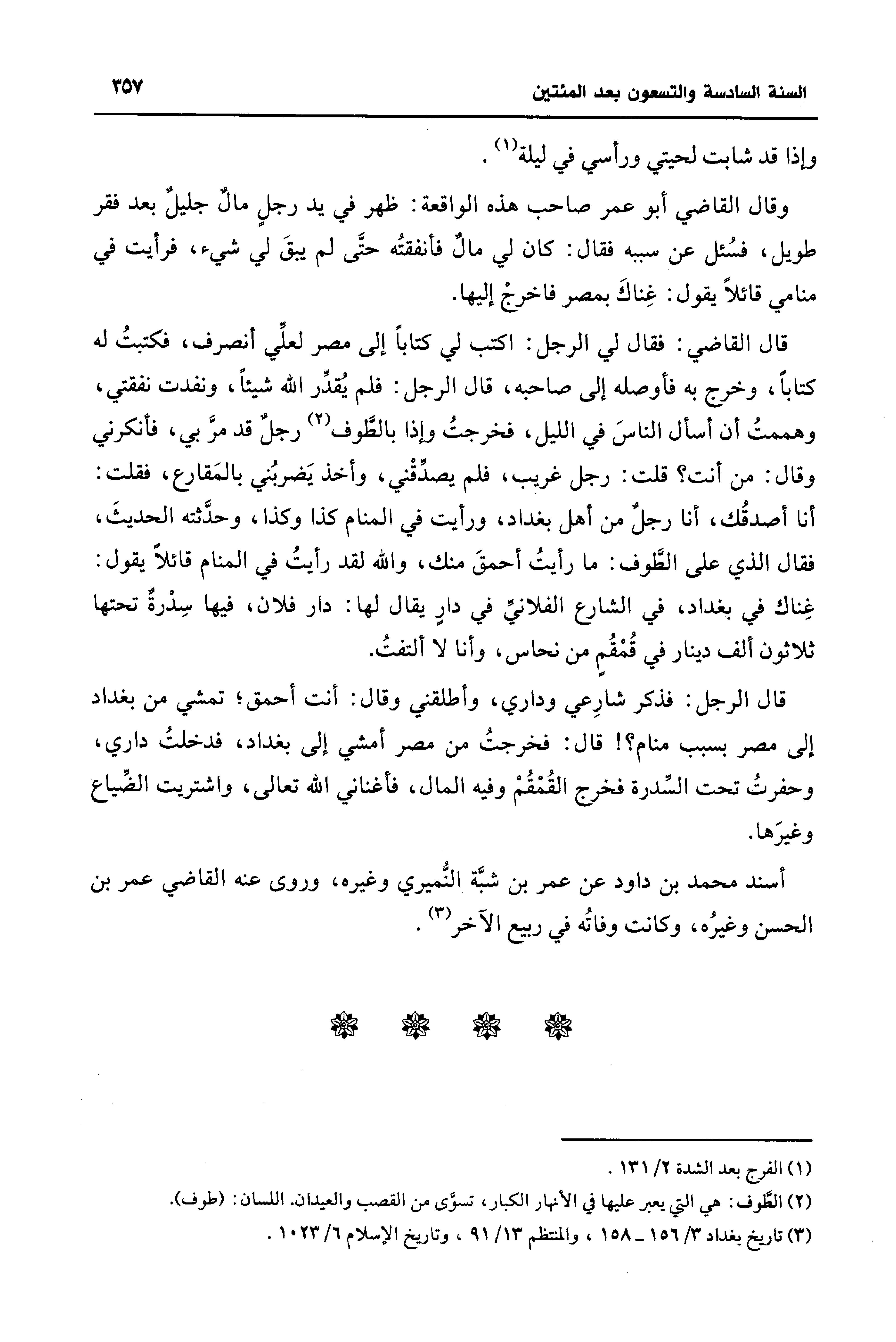 (¬3) تاريخ بغداد 3/ 156 - 158، والمنتظم 13/ 91، وتاريخ الإسلام 6/ 1023.