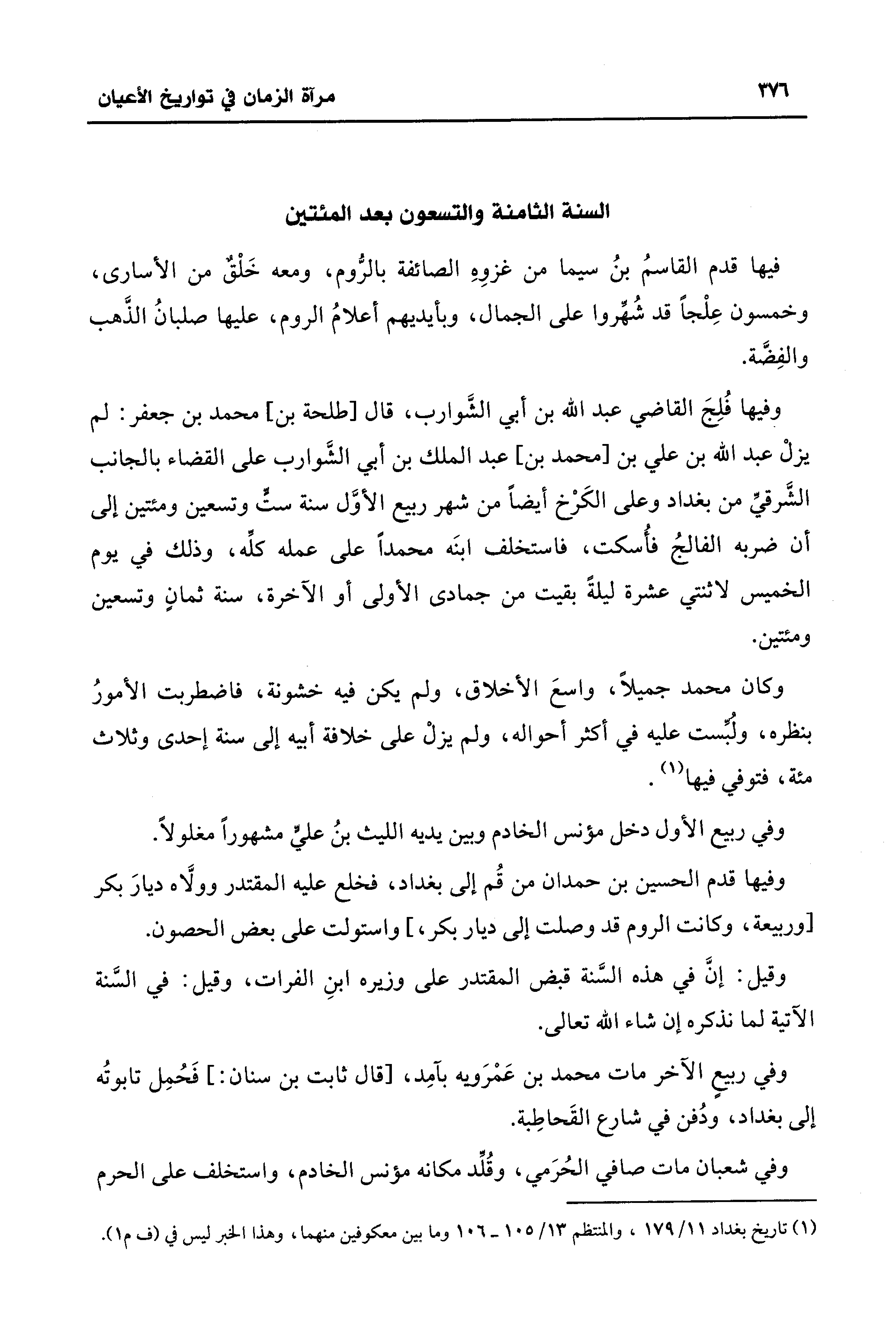 وقيل: إنَّ في هذه السَّنة قبض المقتدر على وزيره ابنِ الفرات، وقيل: في السَّنة الآتية لما نذكره إن شاء الله تعالى.