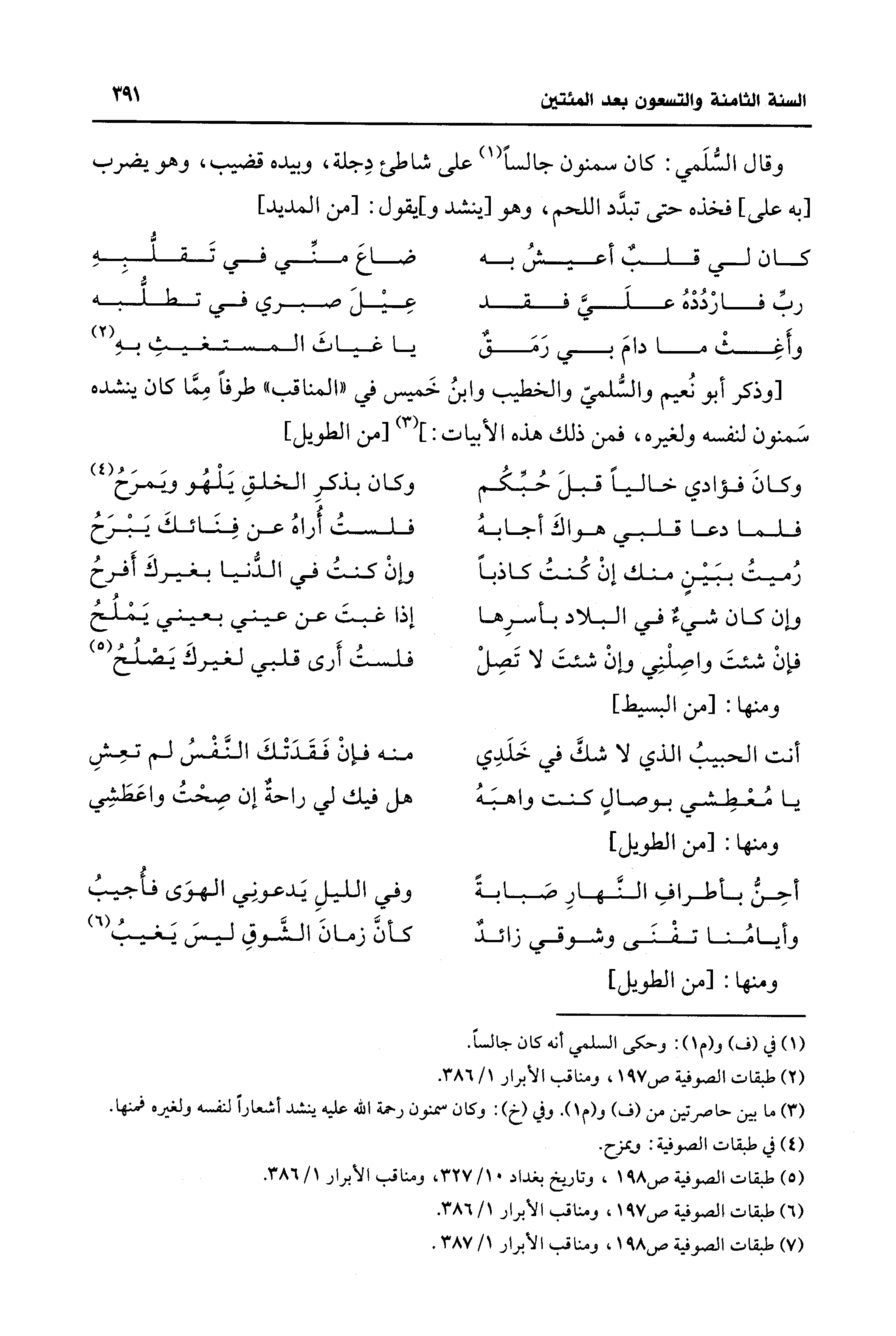 (¬3) ما بين حاصرتين من (ف) و (م 1). وفي (خ): وكان سمنون رحمة الله عليه ينشد أشعارًا لنفسه ولغيره فمنها.