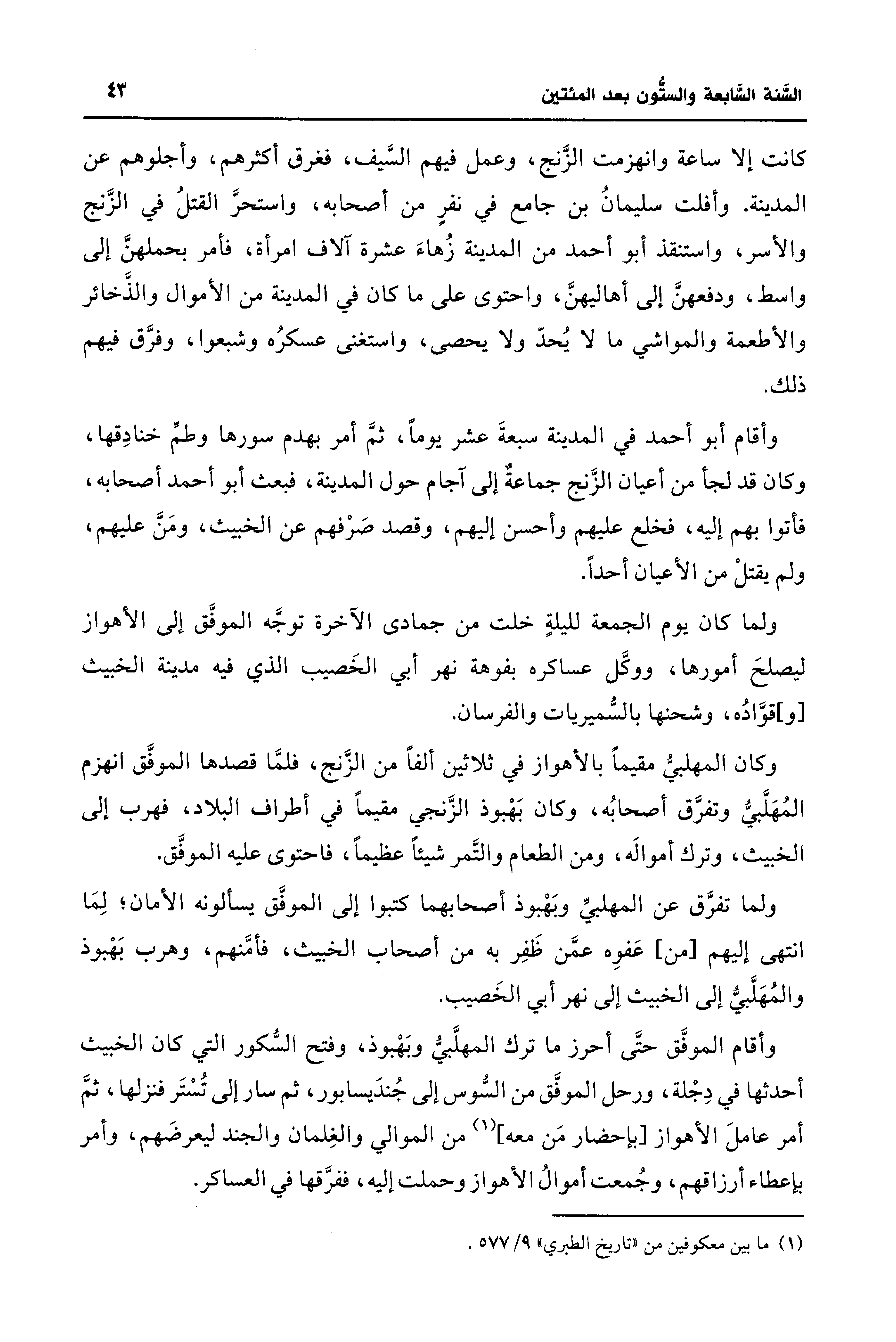 (¬1) ما بين معكوفين من "تاريخ الطبري" 9/ 577.