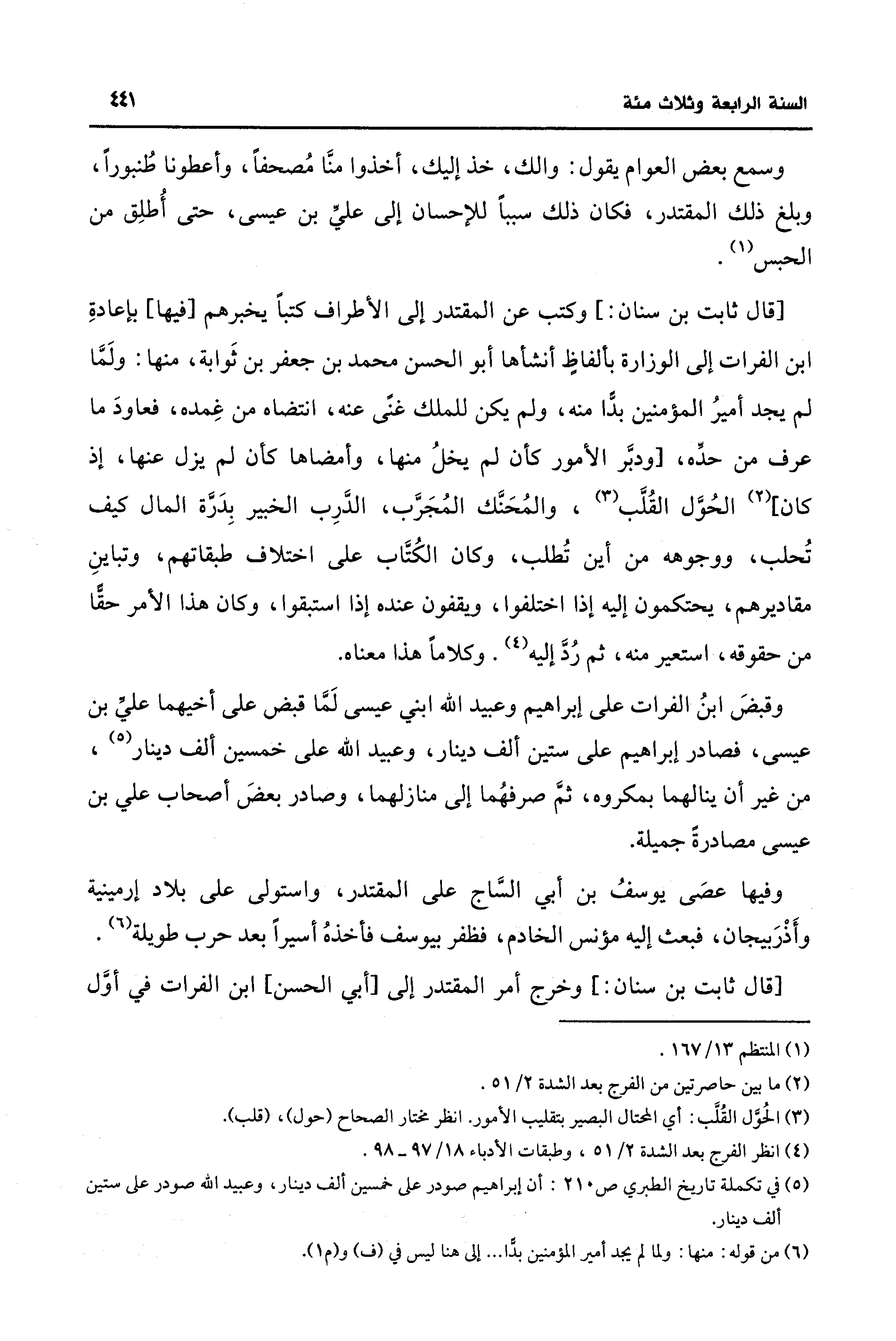 [قال ثابت بن سنان: ] وخرج أمر المقتدر إلى [أبي الحسن] ابن الفرات في أوَّل