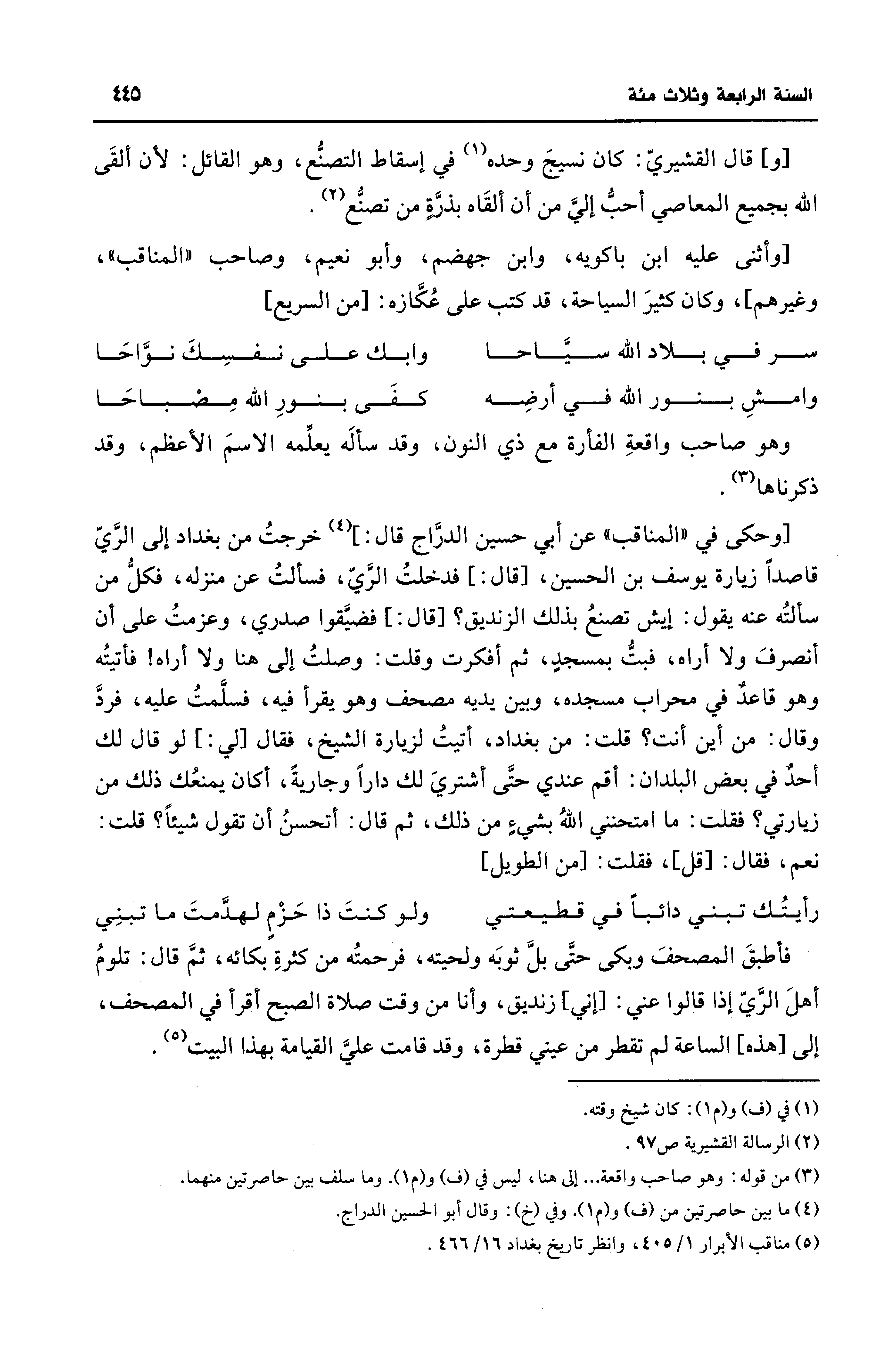 (¬5) مناقب الأبرار 1/ 405، وانظر تاريخ بغداد 16/ 466.