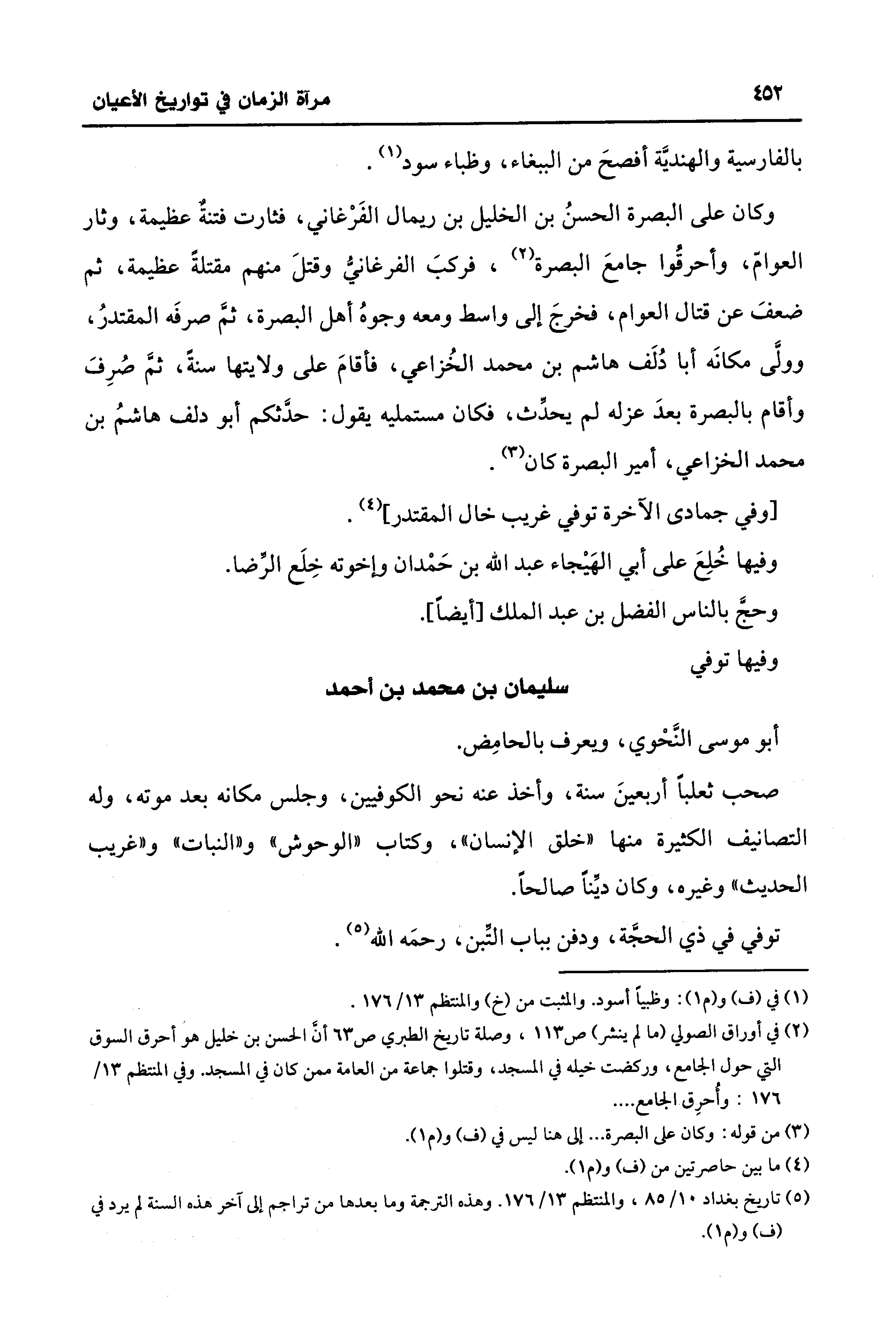 (¬2) في أوراق الصولي (ما لم ينشر) ص 113، وصلة تاريخ الطبري ص 63 أن الحسن بن خليل هو أحرق السوق التي حول الجامع، وركضت خيله في المسجد، وقتلوا جماعة من العامة ممن كان في المسجد. وفي المنتظم 13/ 176: وأُحرِق الجامع.