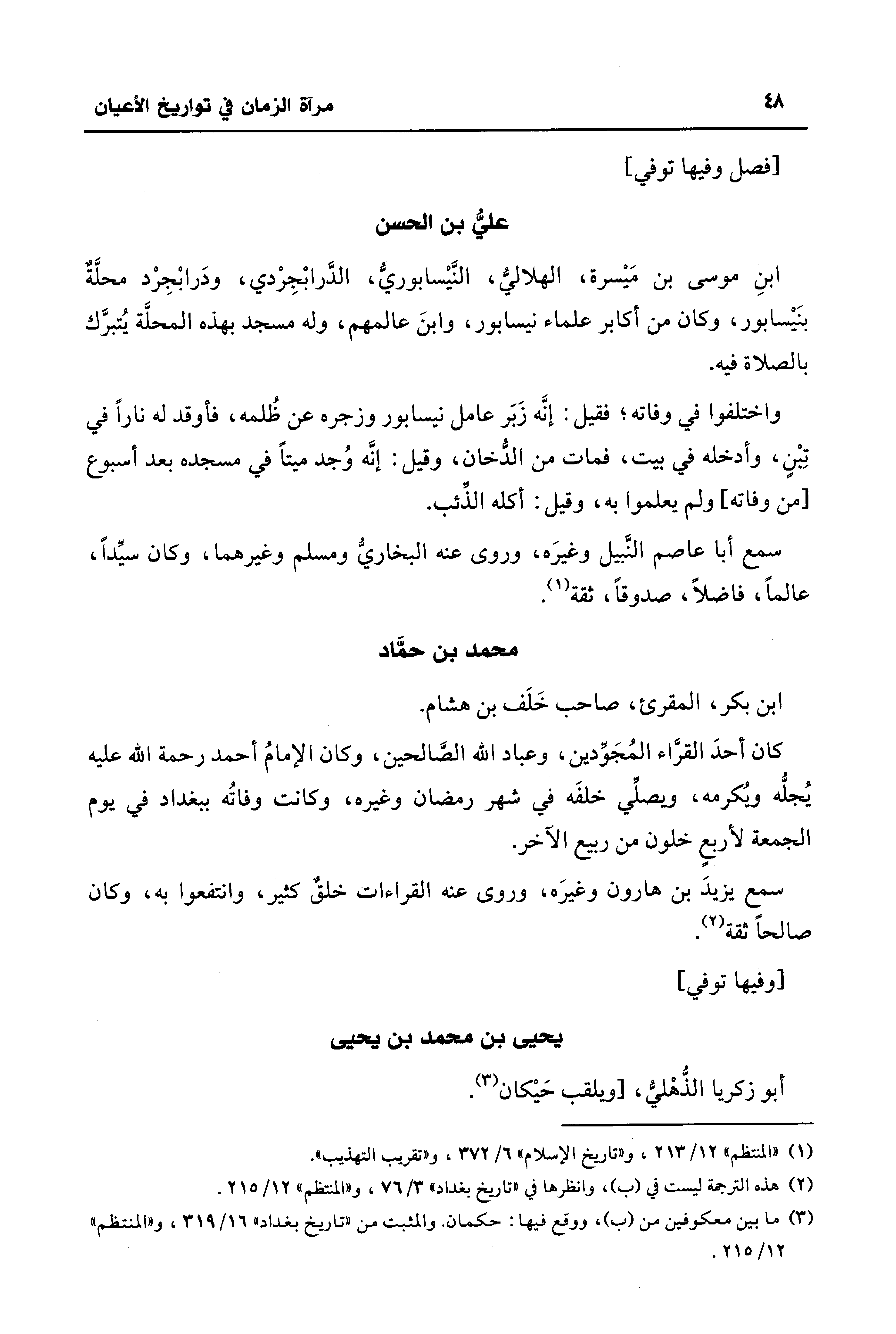 (¬1) "المنتظم" 12/ 213، و"تاريخ الإسلام" 6/ 372، و"تقريب التهذيب".