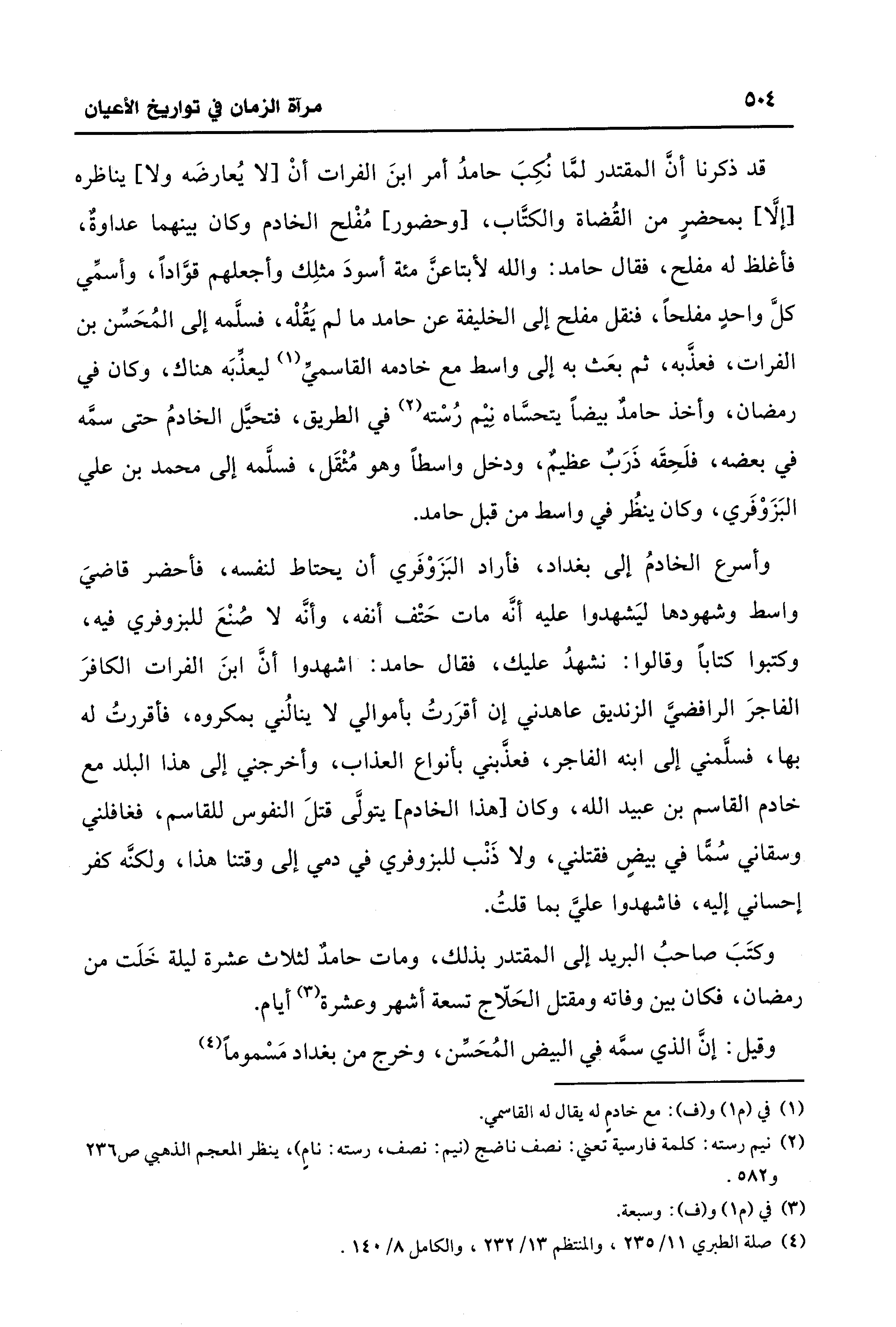 (¬4) صلة الطبري 11/ 235، والمنتظم 13/ 232، والكامل 8/ 140.