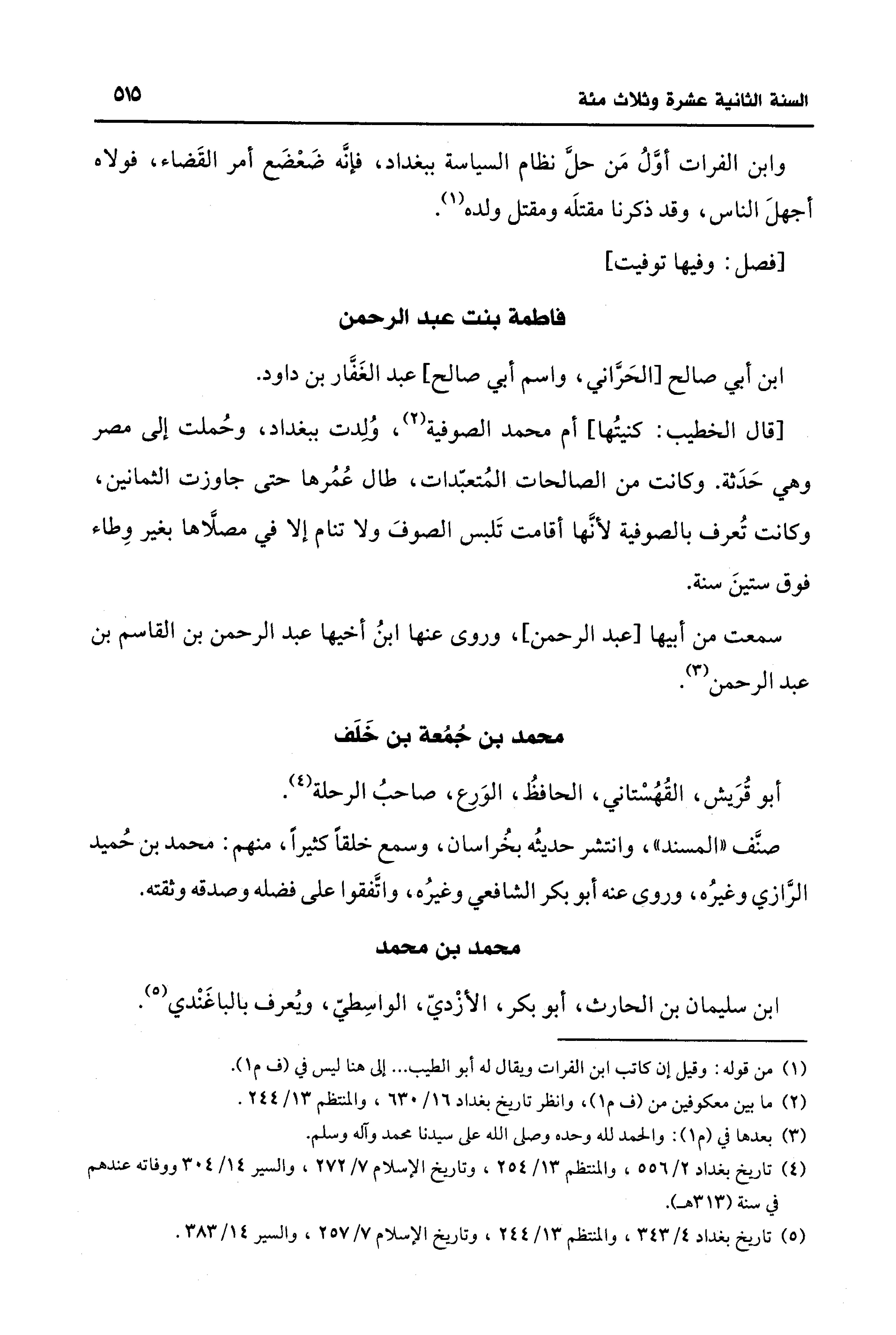 (¬4) تاريخ بغداد 2/ 556، والمنتظم 13/ 254، وتاريخ الإسلام 7/ 272، والسير 14/ 304 ووفاته عندهم في سنة (313 هـ).