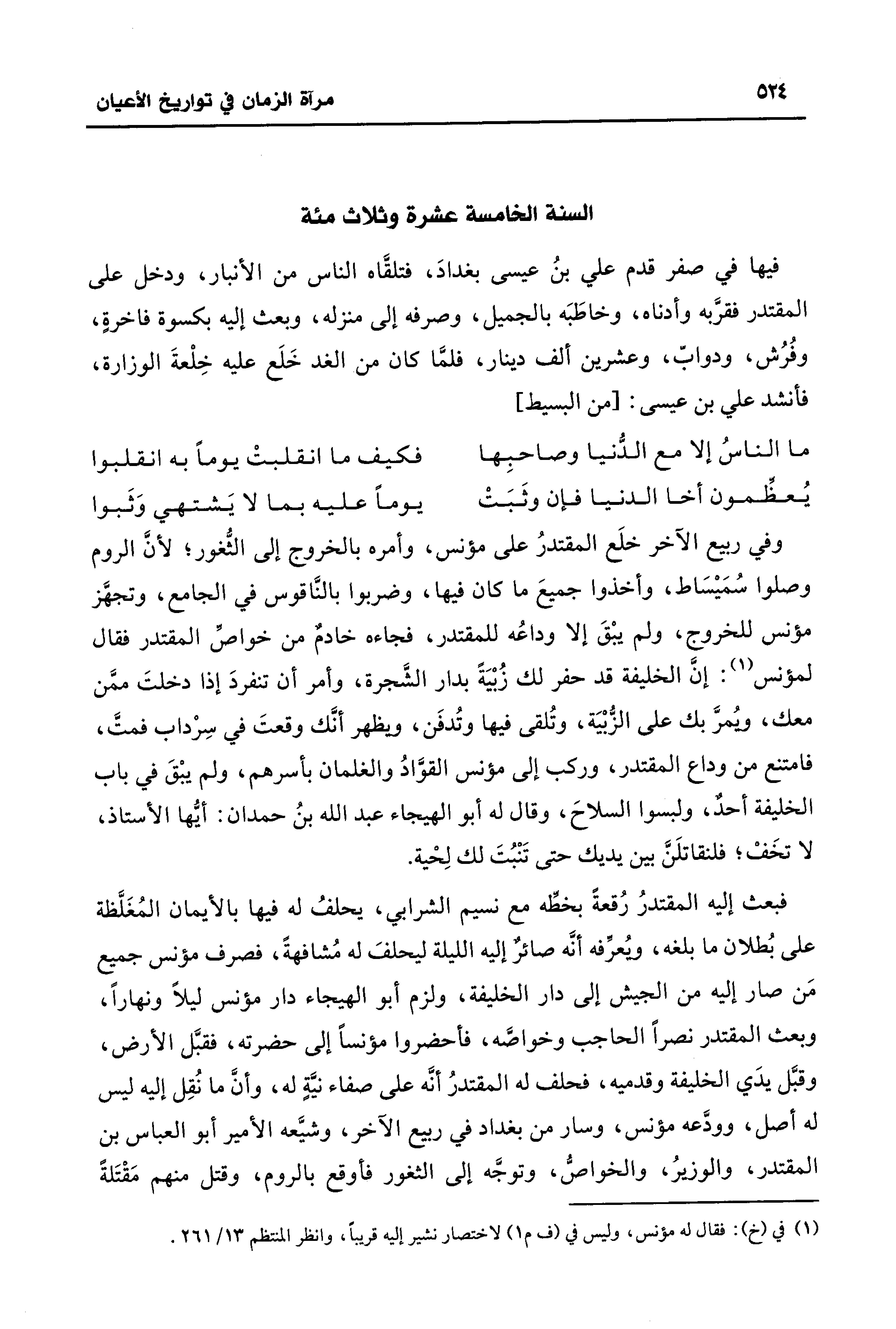 (¬1) في (خ): فقال له مؤنس، وليس في (ف م 1) لاختصار نشير إليه قريبًا، وانظر المنتظم 13/ 261.
