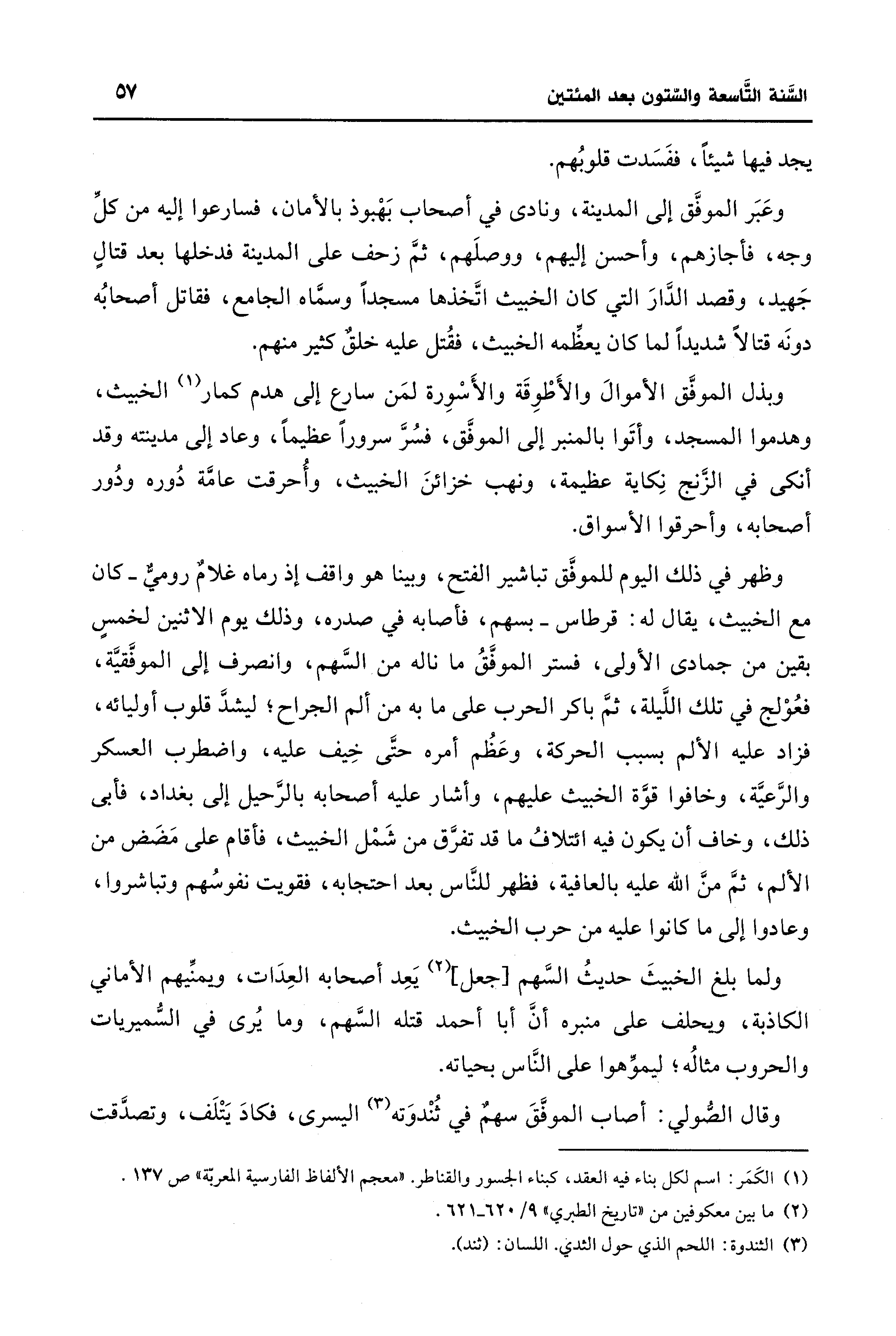 (¬2) ما بين معكوفين من "تاريخ الطبري" 9/ 620 - 621.