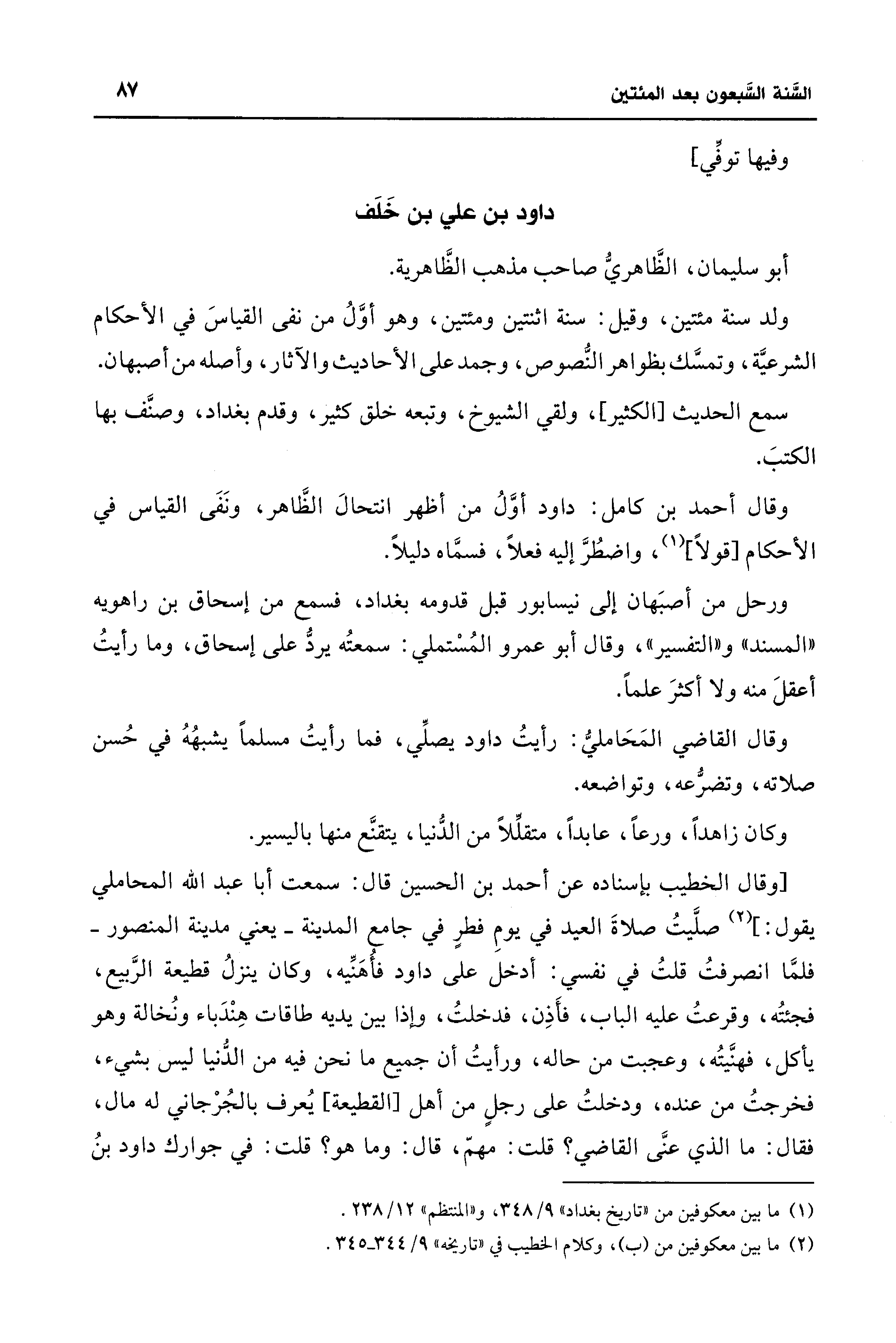 (¬1) ما بين معكوفين من "تاريخ بغداد" 9/ 348، و"المنتظم" 12/ 238.