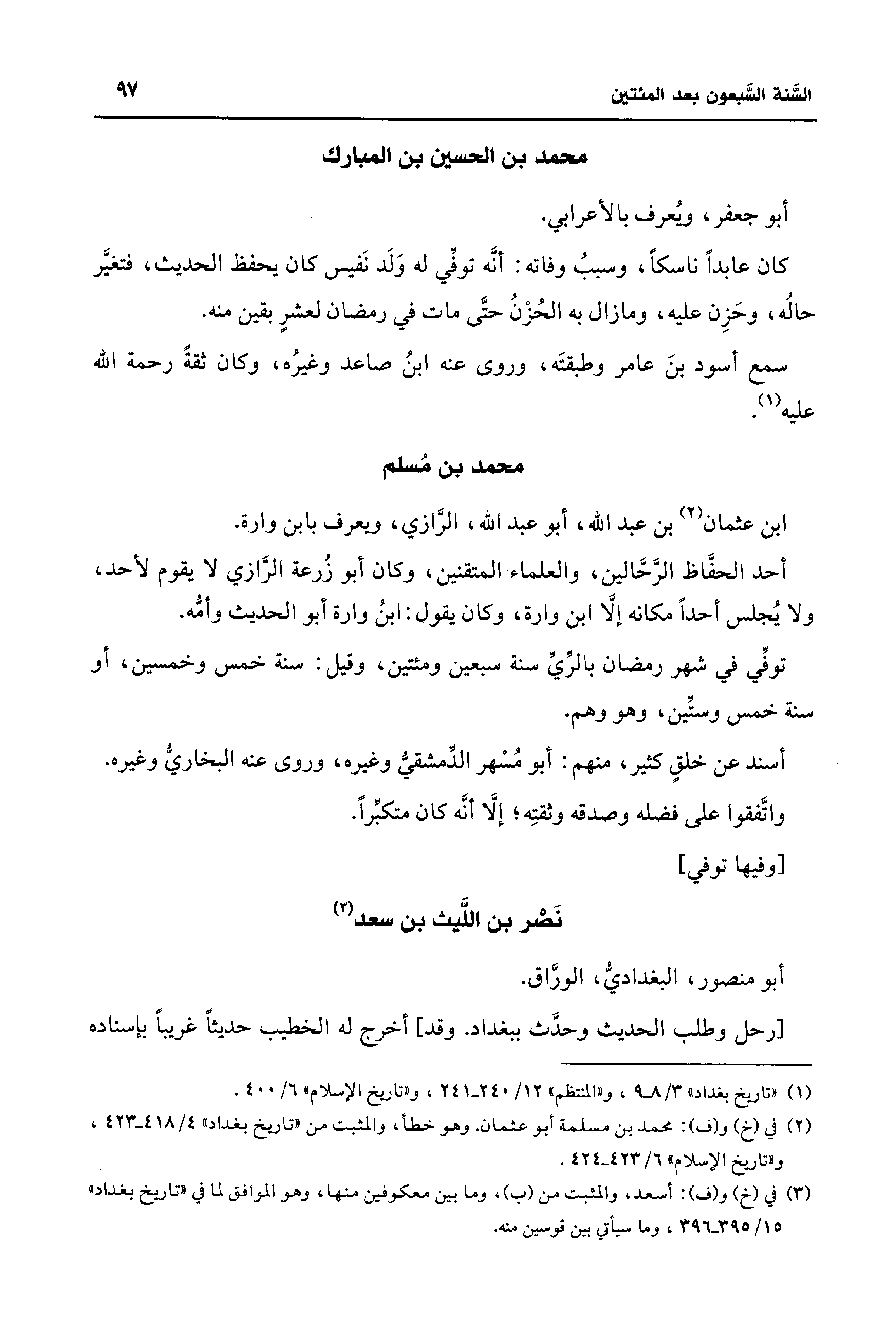 (¬1) "تاريخ بغداد" 3/ 8 - 9، و"المنتظم" 12/ 240 - 241، و"تاريخ الإسلام" 6/ 400.