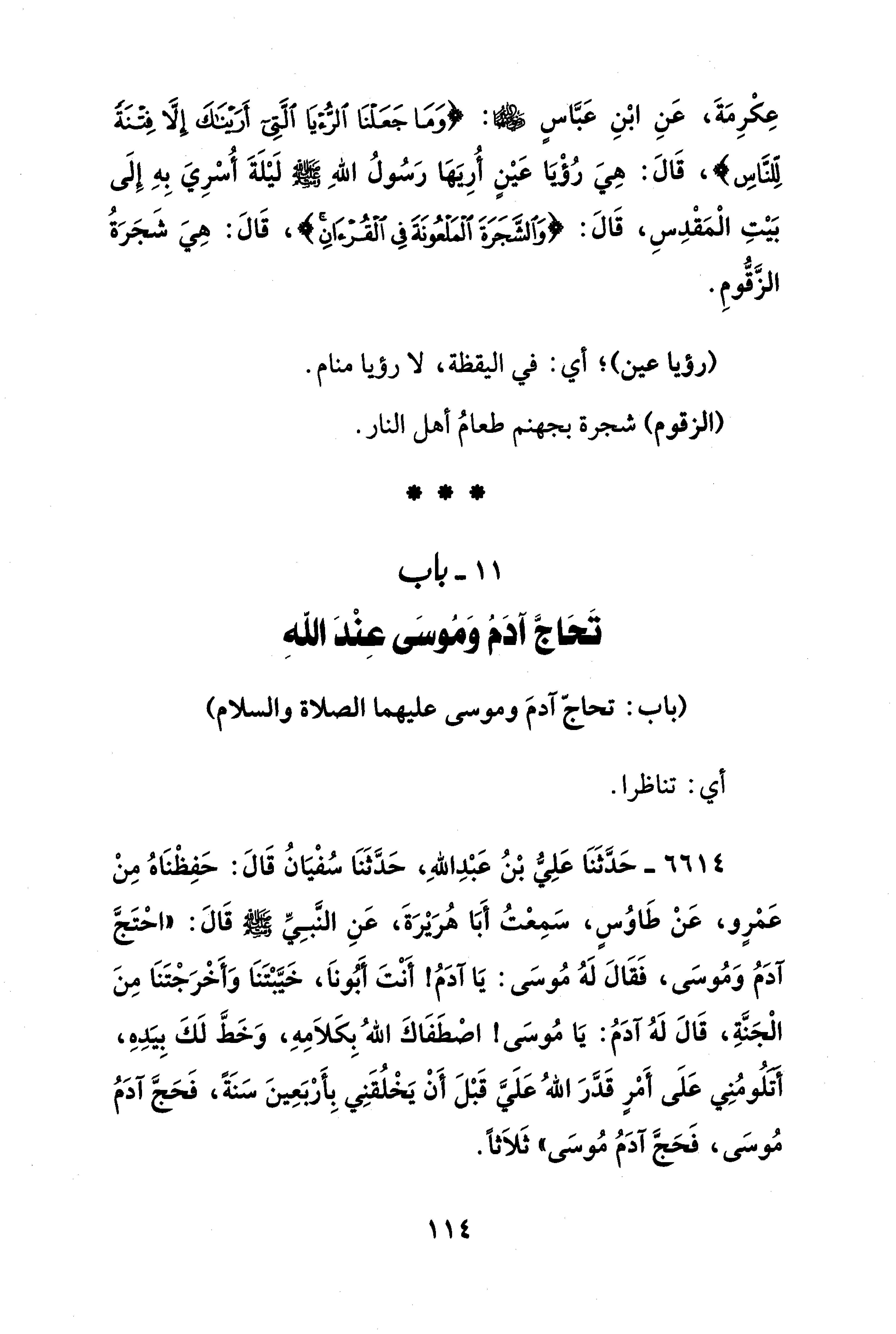 11 - باب تَحَاجَّ آدَمُ وَمُوسى عِنْدَ اللهِ