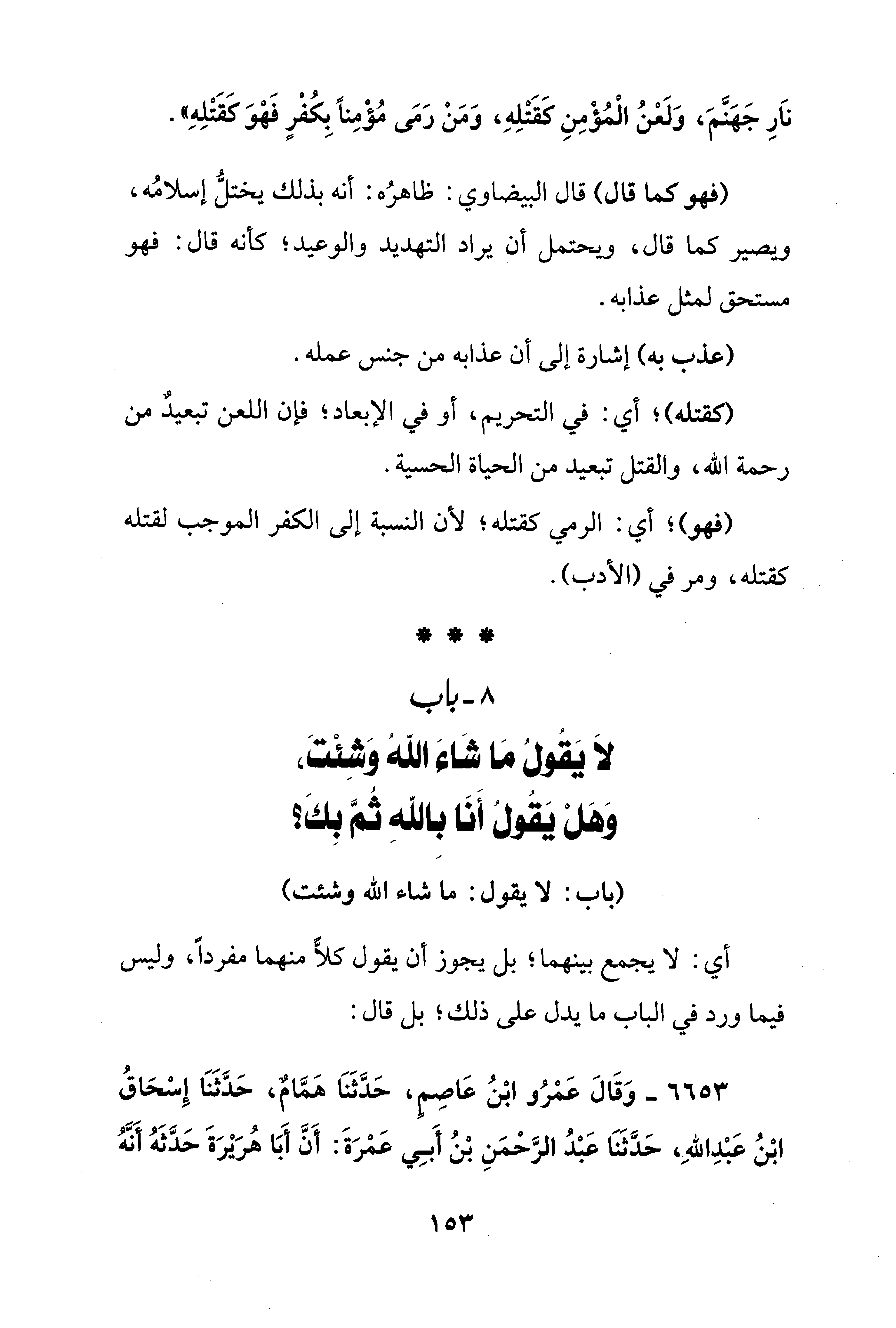 8 - باب لَا يَقولُ مَا شَاء الله وَشِئْتَ، وَهل يَقُولُ أَنَا بِاللهِ ثمَّ بِك؟