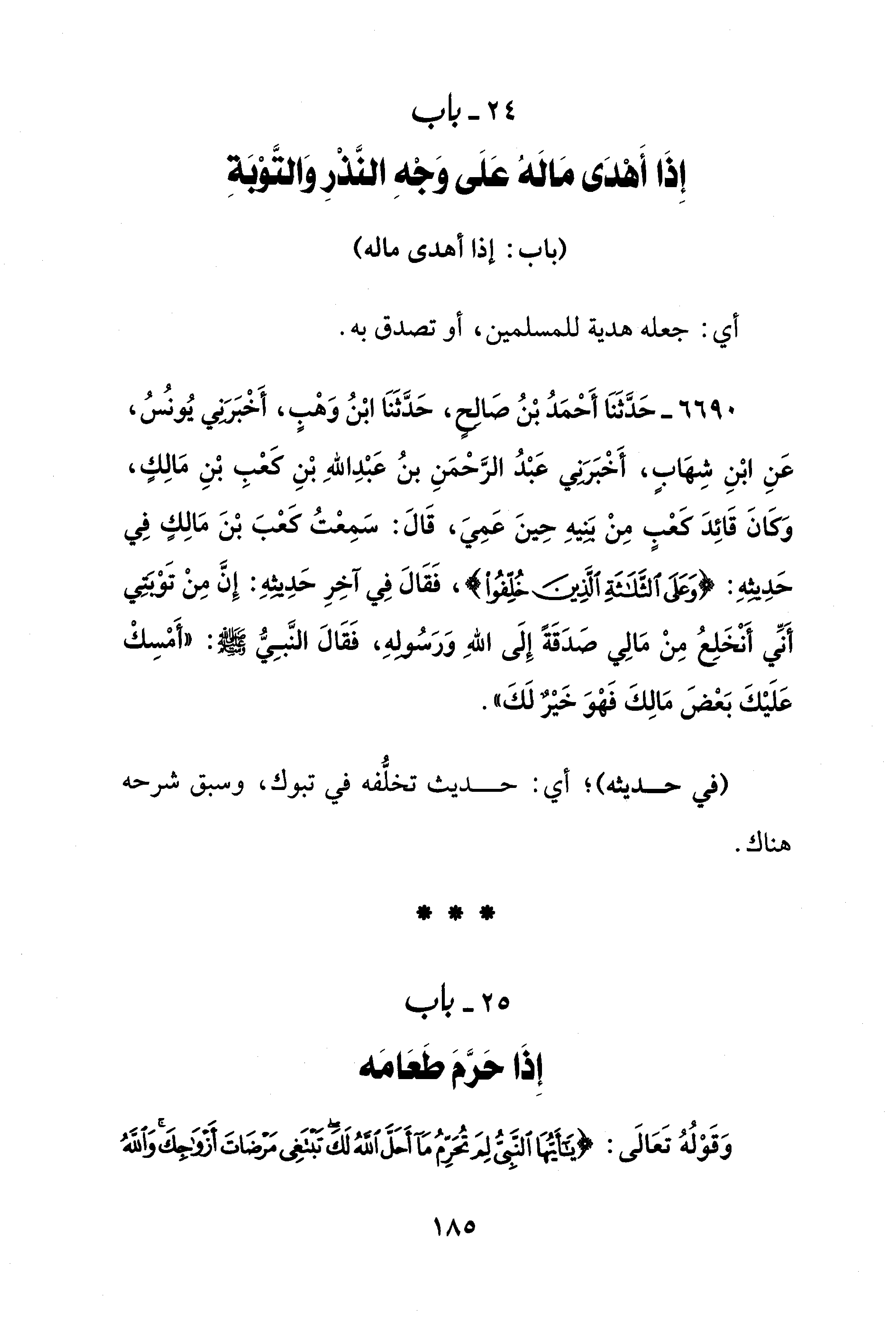 24 - باب إِذَا أَهْدَى مَالَهُ عَلَى وَجْهِ النَّذْرِ وَالتَّوْبَةِ