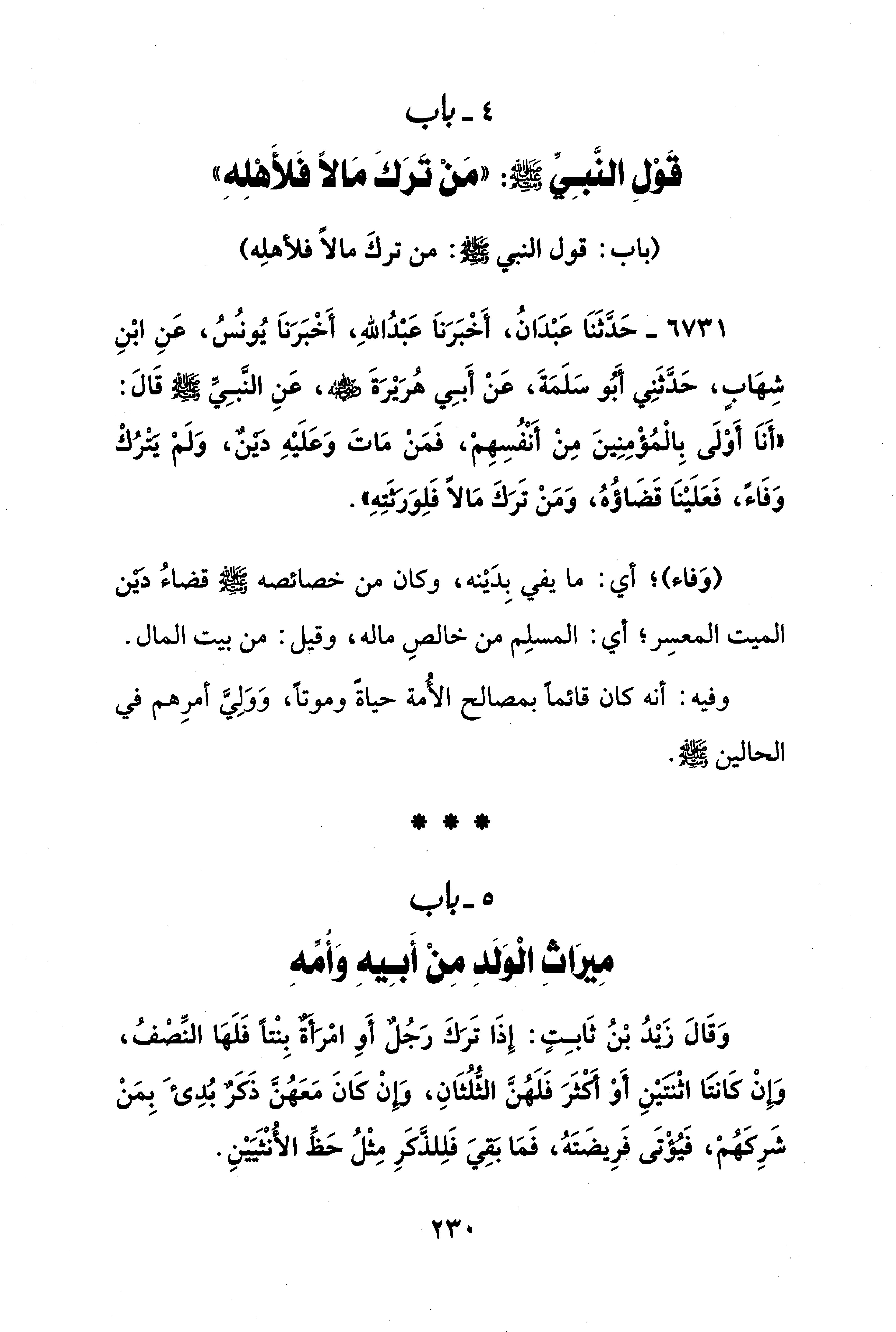 4 - باب قَوْلِ النَّبِيِّ - صلى الله عليه وسلم -: "مَنْ تَرَكَ مَالًا فَلأَهْلِهِ"