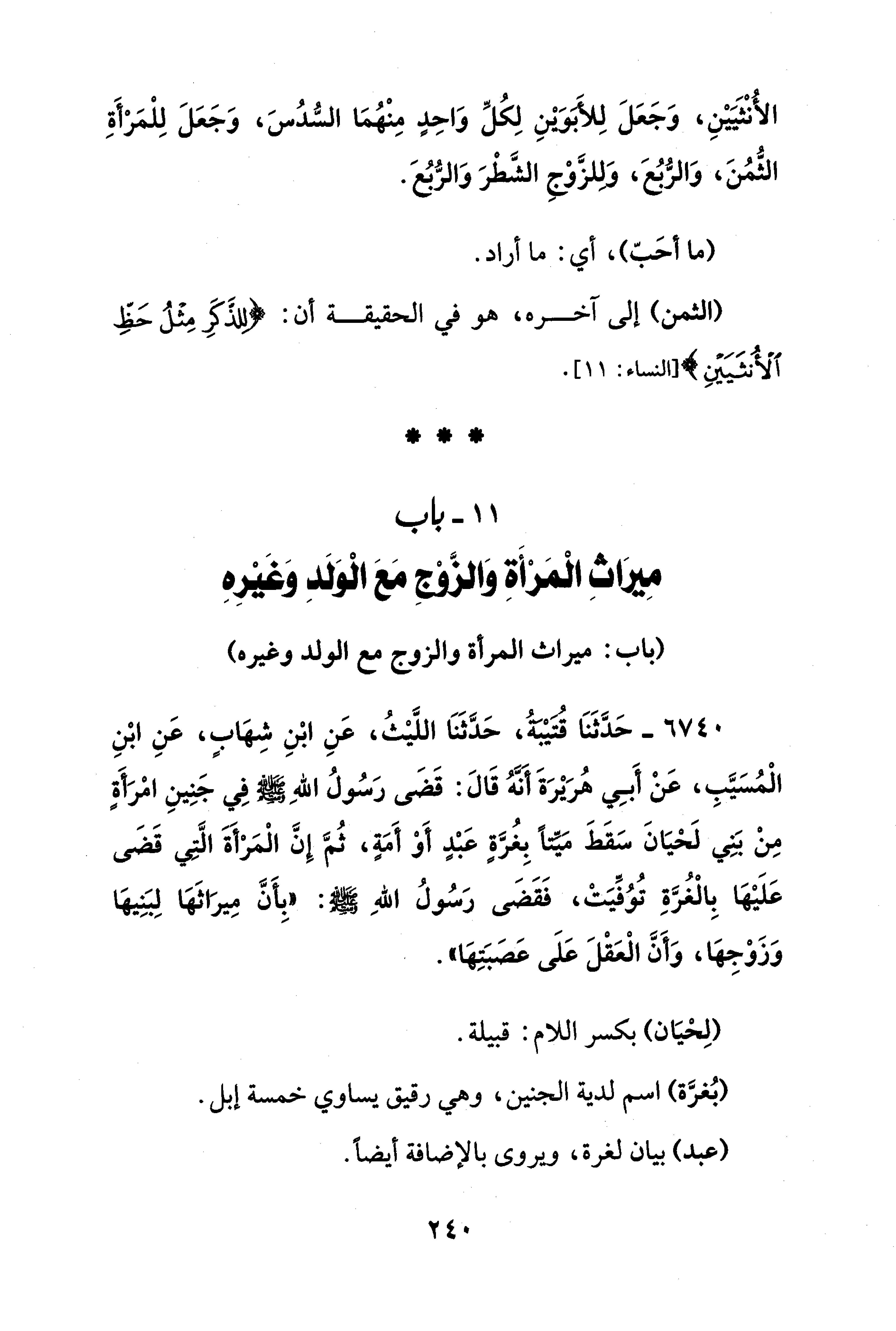 11 - باب مِيراثِ الْمَرْأَةِ وَالزَّوْجِ مَعَ الْوَلَدِ وَغَيْرِهِ