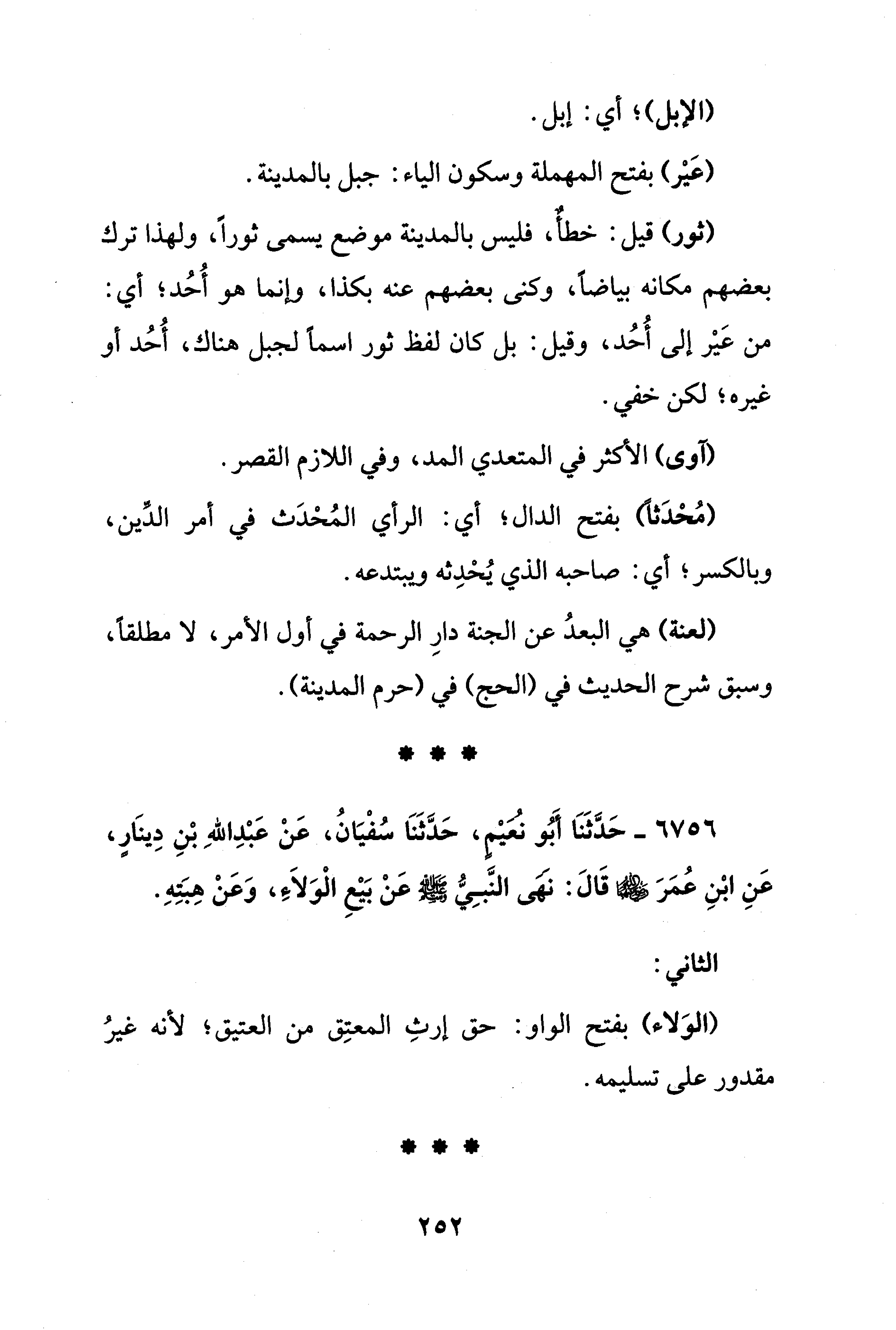 6756 - حَدَّثَنَا أَبُو نُعَيْمٍ، حَدَّثَنَا سُفْيَانُ، عَنْ عَبْدِ اللهِ بْنِ دِينَارٍ، عَنِ ابْنِ عُمَرَ - رضي الله عنهما - قَالَ: نَهَى النَّبِيُّ - صلى الله عليه وسلم - عَنْ بَيْعِ الْوَلَاءِ، وَعَنْ هِبَتِهِ.