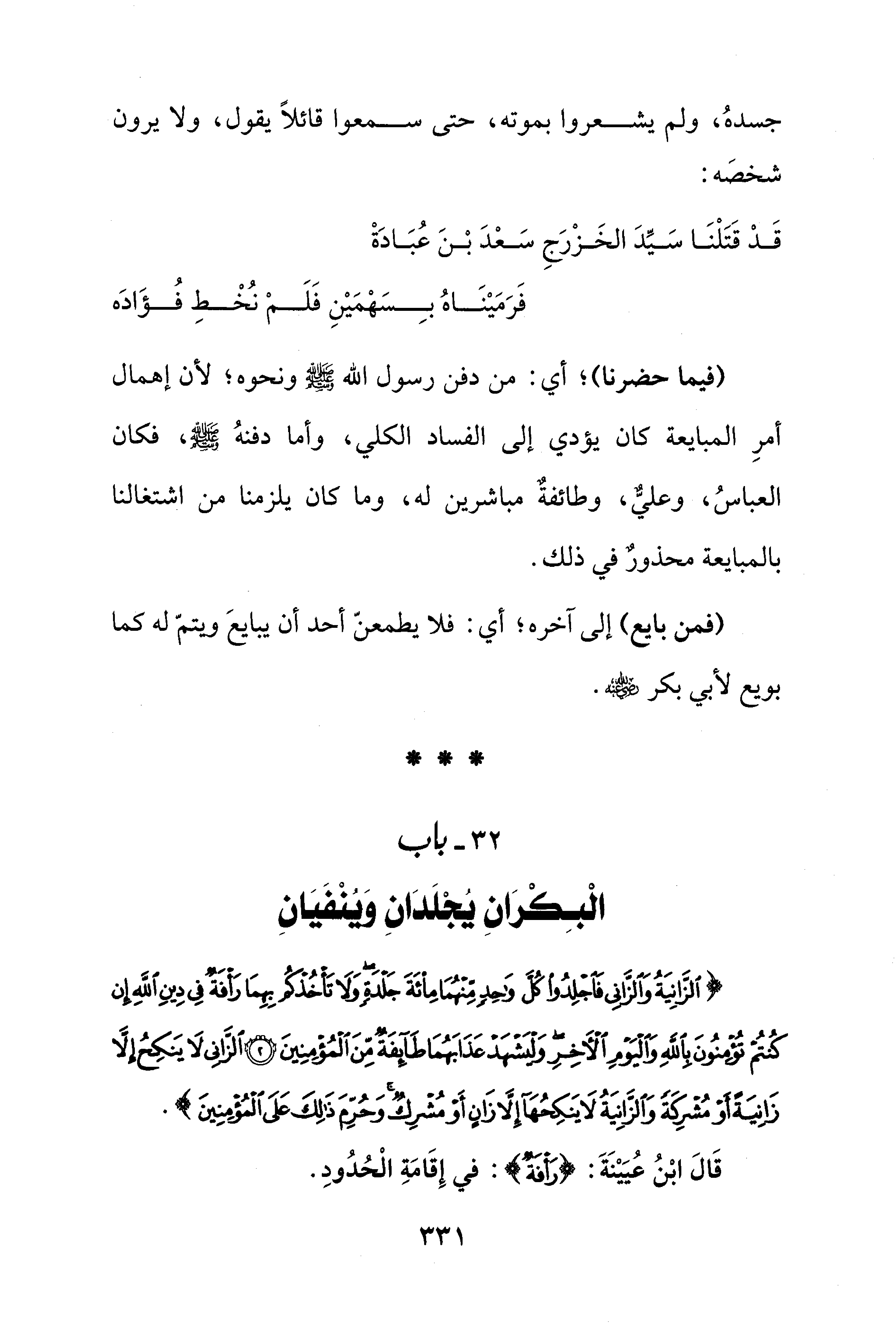 قَدْ قَتَلْنَا سَيِّدَ الخَزْرَجِ سَعْدَ بْنَ عُبَادَةْ ... فَرَمَيْنَاهُ بِسَهْمَيْنِ فَلَمْ نُخْطِ فُؤَادَه