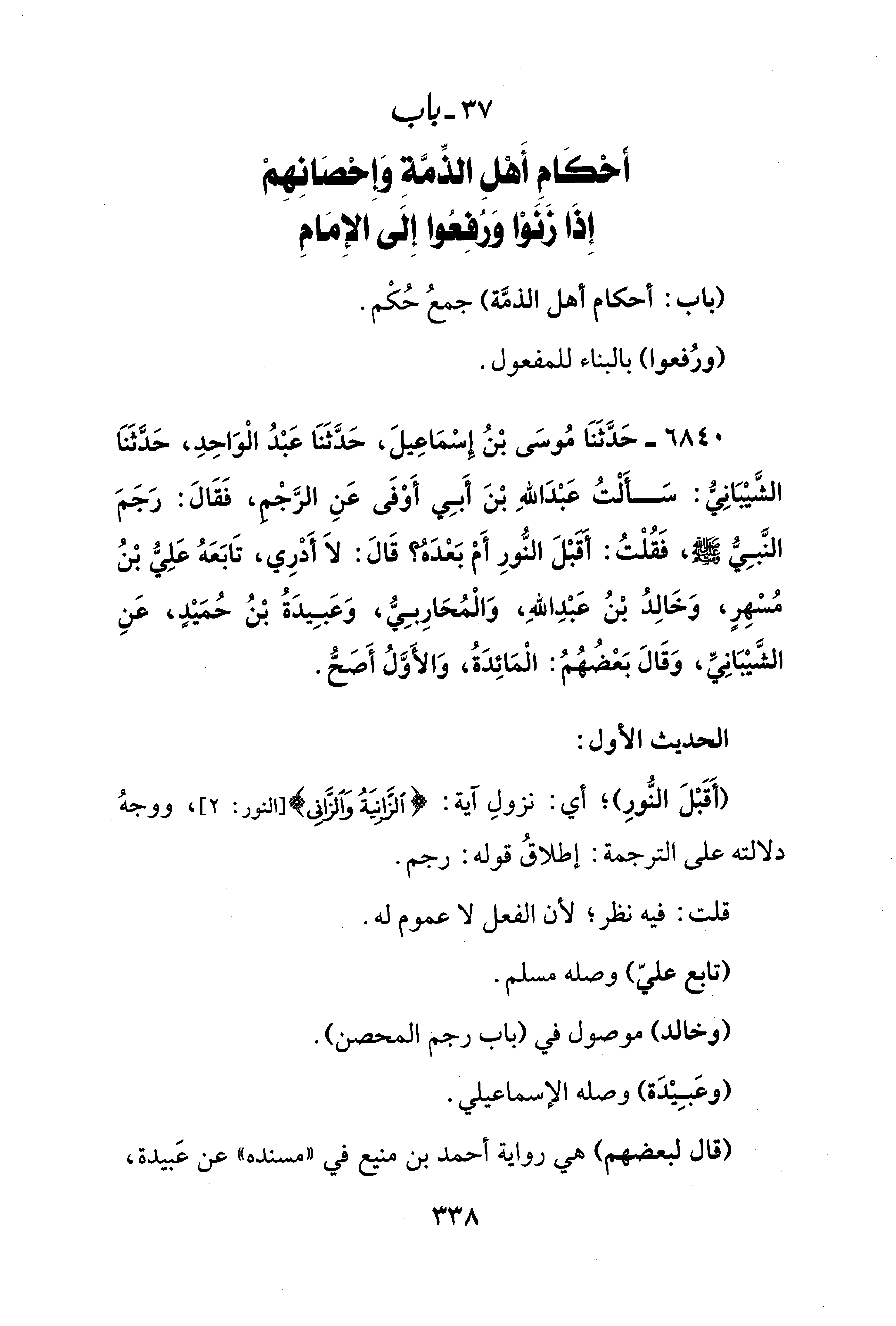 37 - باب أحْكَامِ أَهْلِ الذِّمَّةِ وَإِحْصَانِهِمْ إِذَا زَنَوْا وَرُفِعُوا إِلَى الإِمَامِ