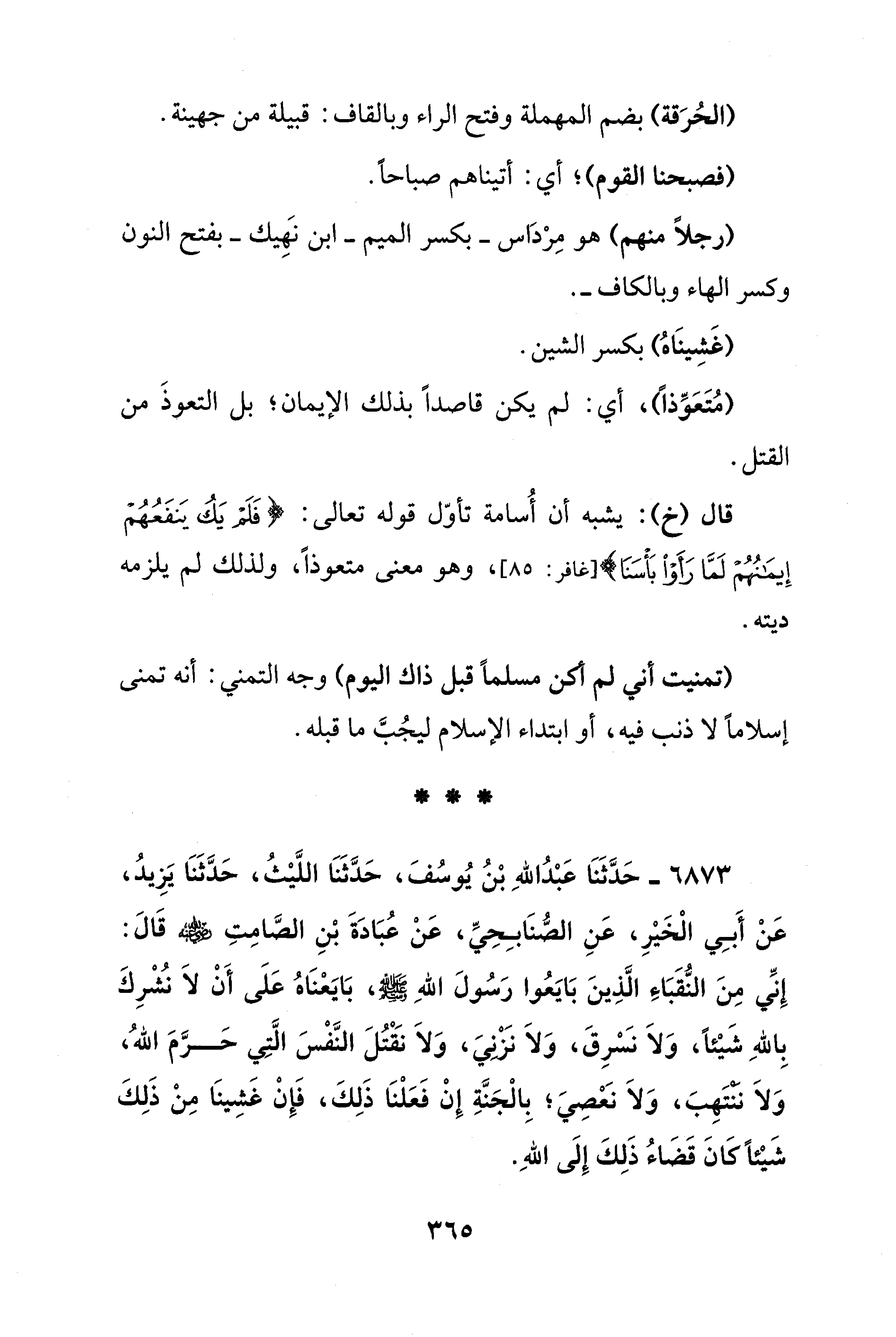 قال (خ): يشبه أن أُسامة تأوّل قوله تعالى: {فَلَمْ يَكُ يَنْفَعُهُمْ إِيمَانُهُمْ لَمَّا رَأَوْا بَأْسَنَا} [غافر: 85]، وهو معنى متعوذًا، ولذلك لم يلزمه ديته.