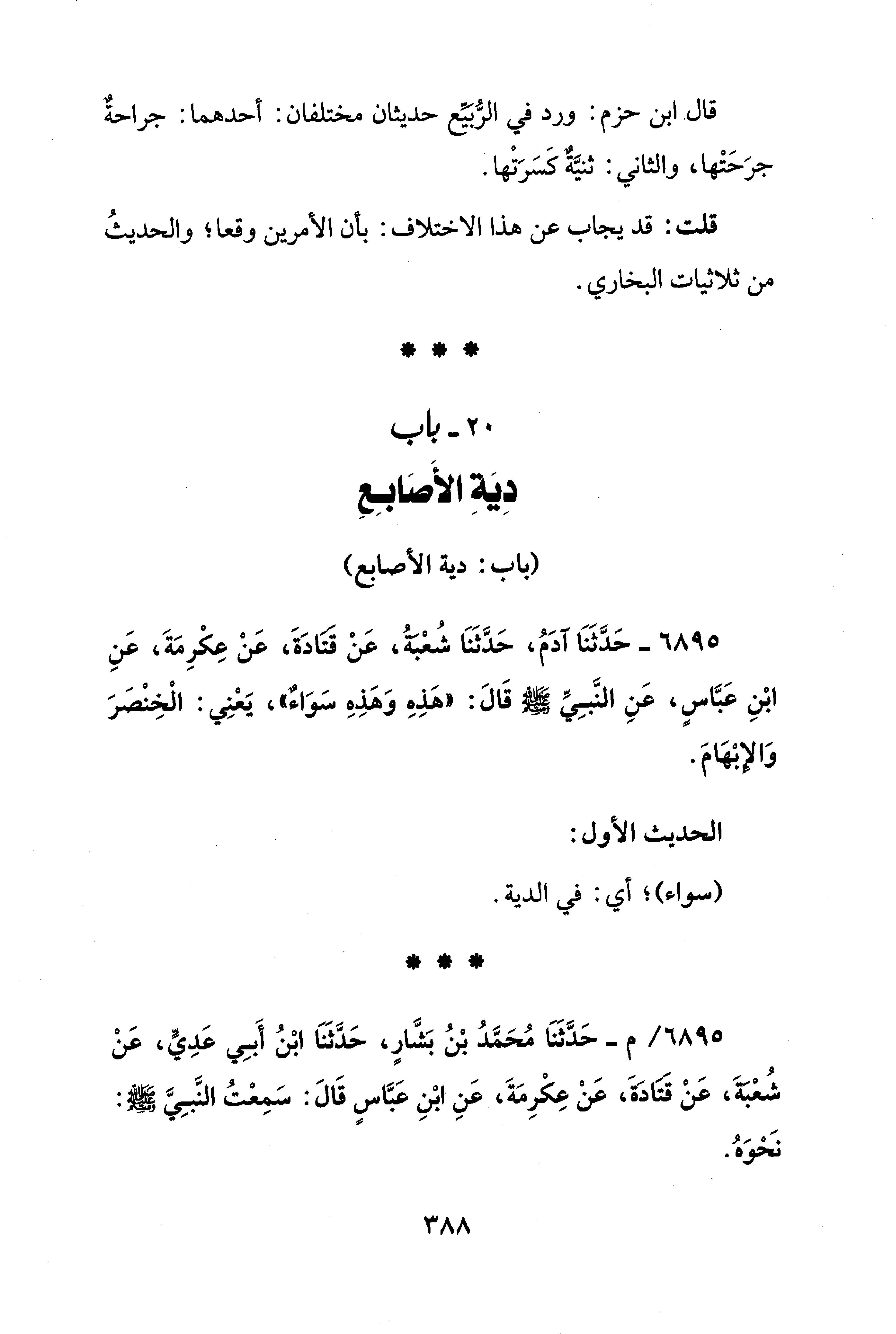 20 - باب دِيَةِ الأَصَابِع