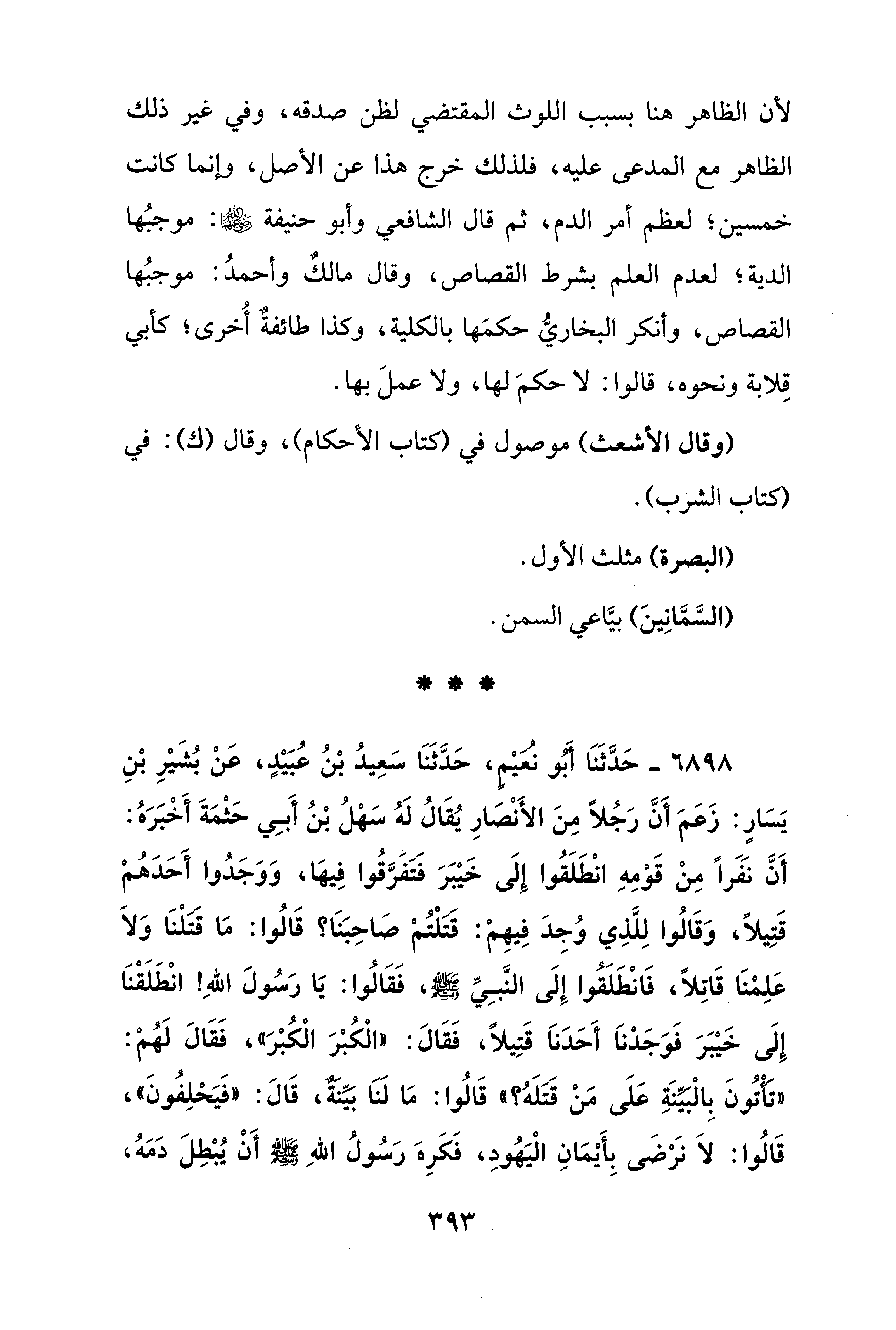 لأن الظاهر هنا بسبب اللوث المقتضي لظن صدقه، وفي غير ذلك الظاهر مع المدعى عليه، فلذلك خرج هذا عن الأصل، وإنما كانت خمسين؛ لعظم أمر الدم، ثم قال الشافعي وأبو حنيفة - رضي الله عنه -: موجبُها الدية؛ لعدم العلم بشرط القصاص، وقال مالكٌ وأحمدُ: موجبُها القصاص، وأنكر البخاريُّ حكمَها بالكلية، وكذا طائفةٌ أُخرى؛ كأبي قِلابة ونحوه، قالوا: لا حكمَ لها، ولا عملَ بها.