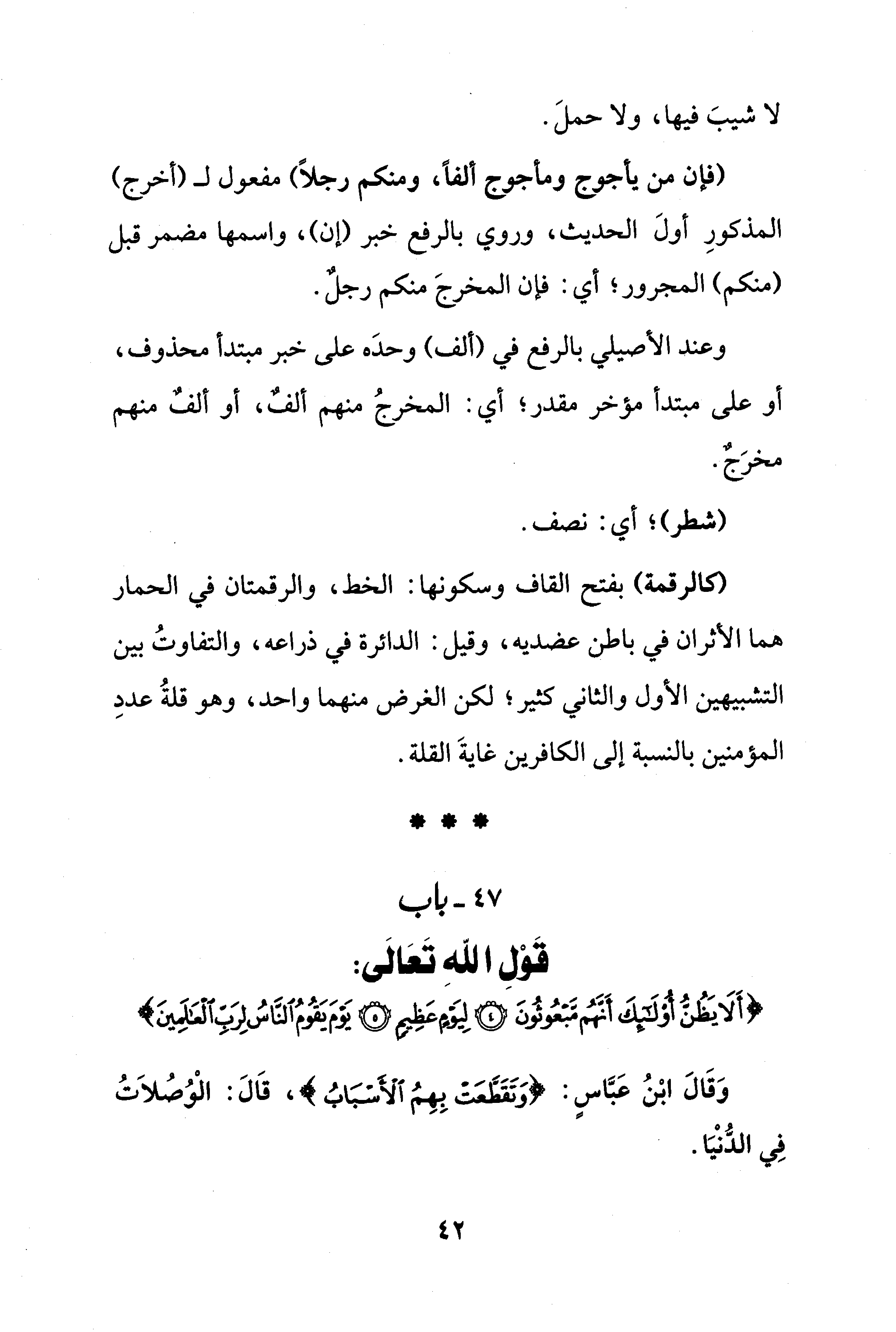 (فإن من يأجوج ومأجوج ألفًا، ومنكم رجلًا) مفعول لـ (أخرج) المذكورِ أولَ الحديث، وروي بالرفع خبر (إن)، واسمها مضمر قبل (منكم) المجرور؛ أي: فإن المخرجَ منكم رجلٌ.