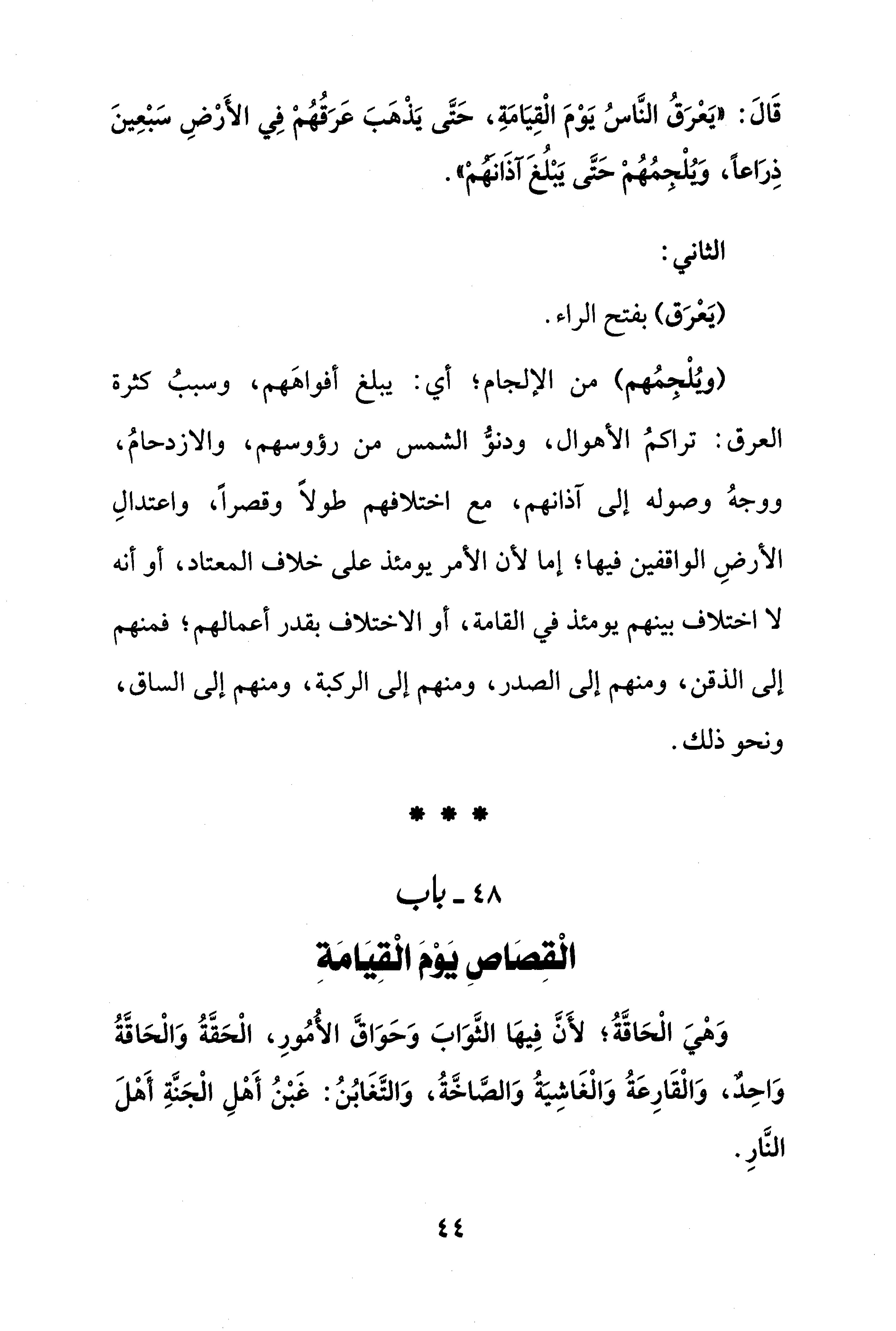 قَالَ: "يَعْرَقُ النَّاسُ يَوْمَ الْقِيَامَةِ، حَتَّى يَذْهَبَ عَرَقُهُمْ فِي الأَرْضِ سَبْعِينَ ذِرَاعًا، وَيُلْجِمُهُمْ حَتَّى يَبْلُغَ آذَانهُمْ".