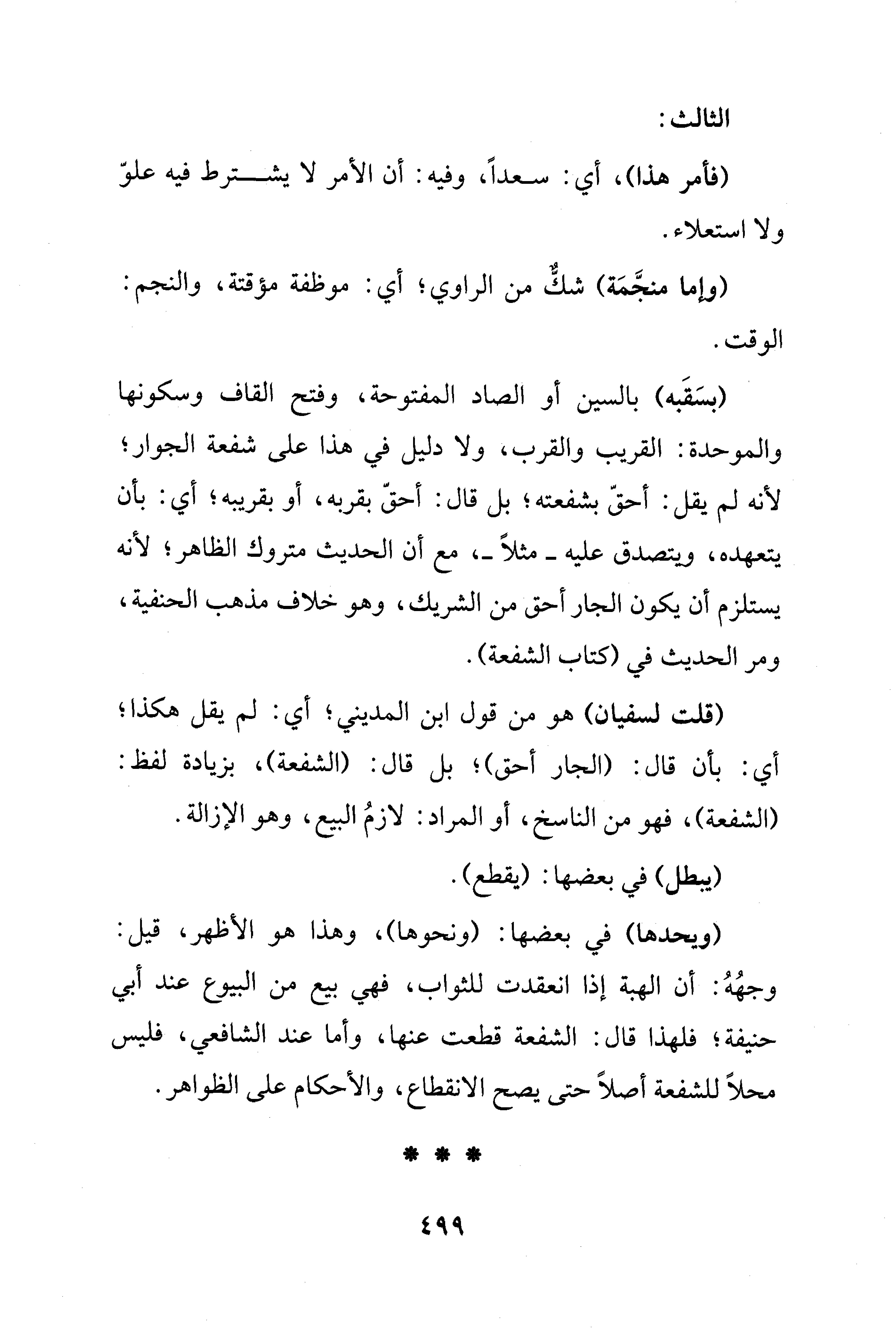 (ويحدها) في بعضها: (ونحوها)، وهذا هو الأظهر، قيل: وجهُهُ: أن الهبة إذا انعقدت للثواب، فهي بيع من البيوع عند أبي حنيفة؛ فلهذا قال: الشفعة قطعت عنها، وأما عند الشافعي، فليس محلًا للشفعة أصلًا حتى يصح الانقطاع، والأحكام على الظواهر.