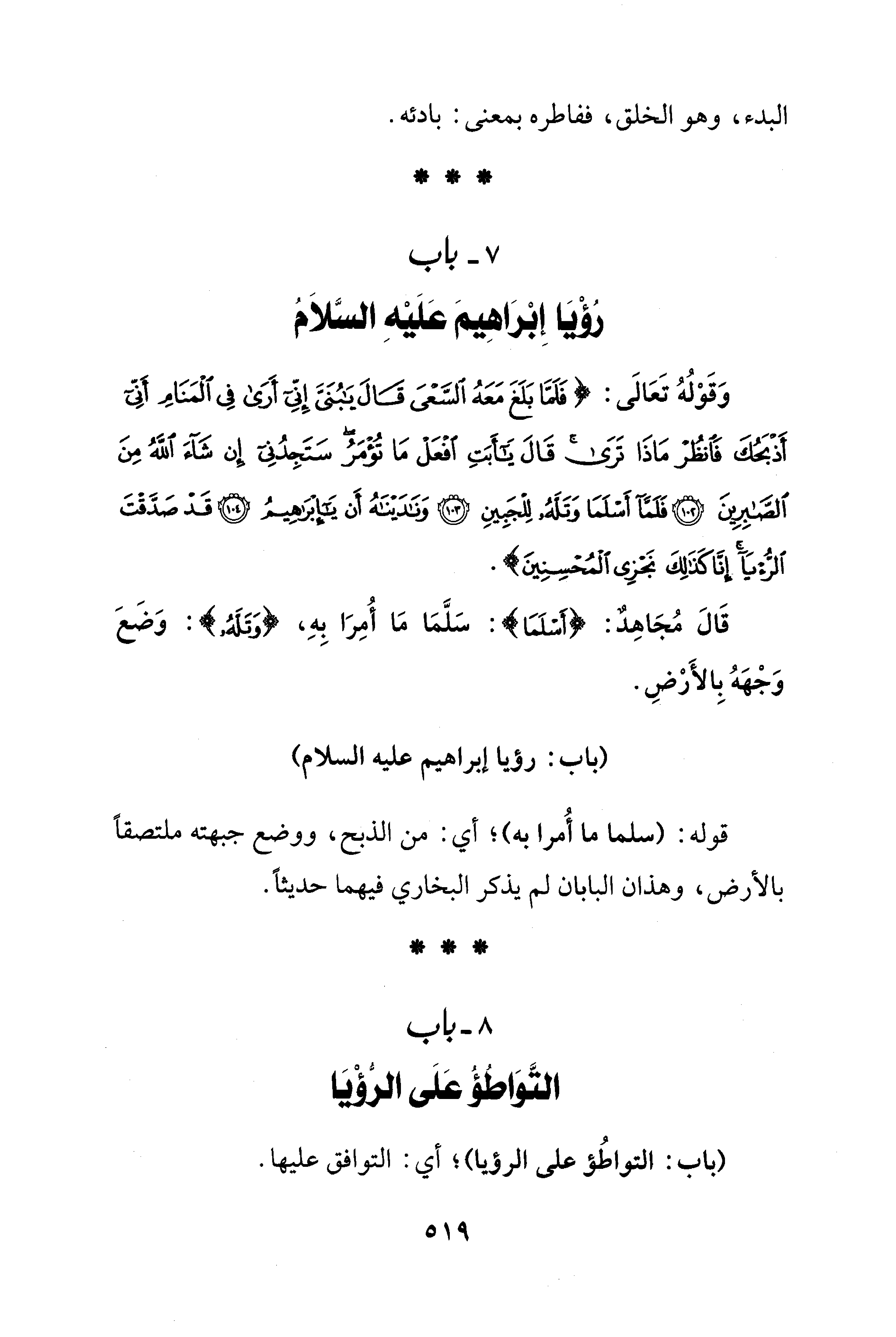 7 - باب رُؤْيَا إِبْرَاهِيمَ عَلَيْهِ السَّلاَمُ