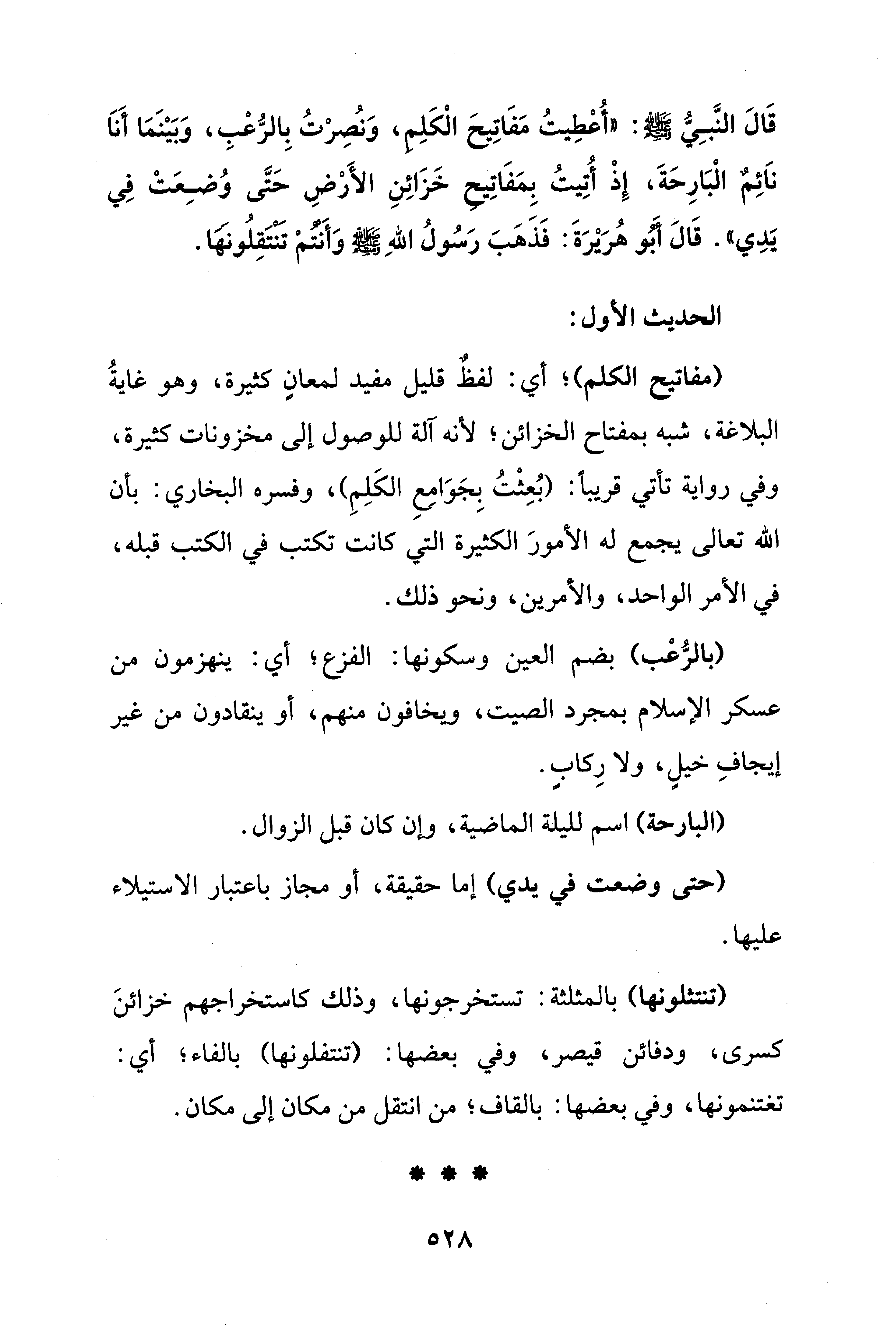قَالَ النَّبِيُّ - صلى الله عليه وسلم -: "أُعْطِيتُ مَفَاتِيحَ الْكَلِم، وَنُصِرْتُ بِالرُّعْبِ، وَبَيْنَمَا أَنَا نَائِمٌ الْبَارِحَةَ، إِذْ أُتِيتُ بِمَفَاتِيح خَزَائِنِ الأَرْضِ حَتَّى وُضِعَتْ فِي يَدِي". قَالَ أَبُو هُرَيْرَةَ: فَذَهَبَ رَسُولُ اللهِ - صلى الله عليه وسلم - وَأَنتُمْ تَنْتَقِلُونها.