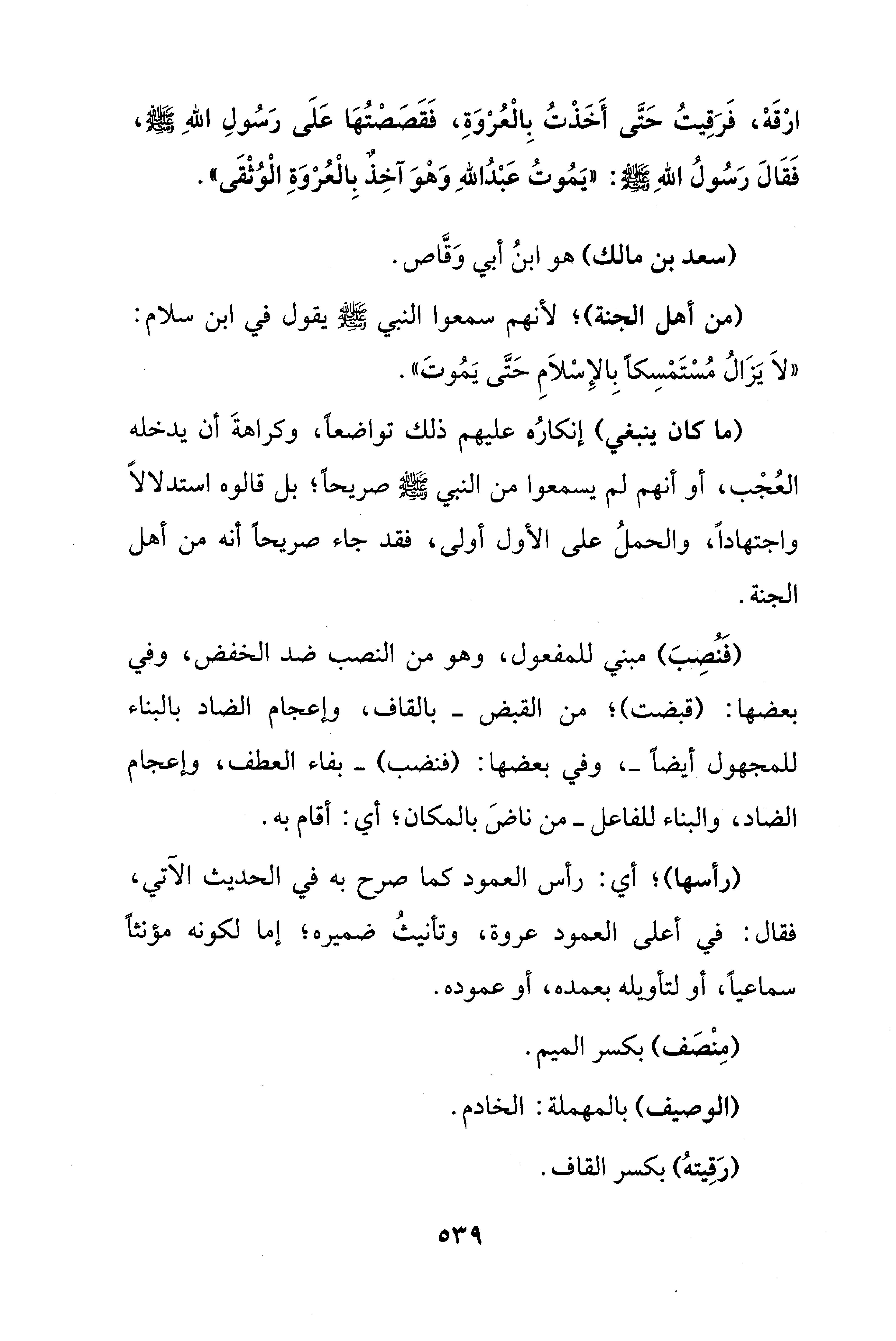 ارْقَهْ، فَرَقِيتُ حَتَّى أَخَذْتُ بِالْعُرْوَةِ، فَقَصَصْتُهَا عَلَى رَسُولِ اللهِ - صلى الله عليه وسلم -، فَقَالَ رَسُولُ اللهِ - صلى الله عليه وسلم -: "يَمُوتُ عَبْدُ اللهِ وَهْوَ آخِذٌ بِالْعُرْوَةِ الْوُثْقَى".