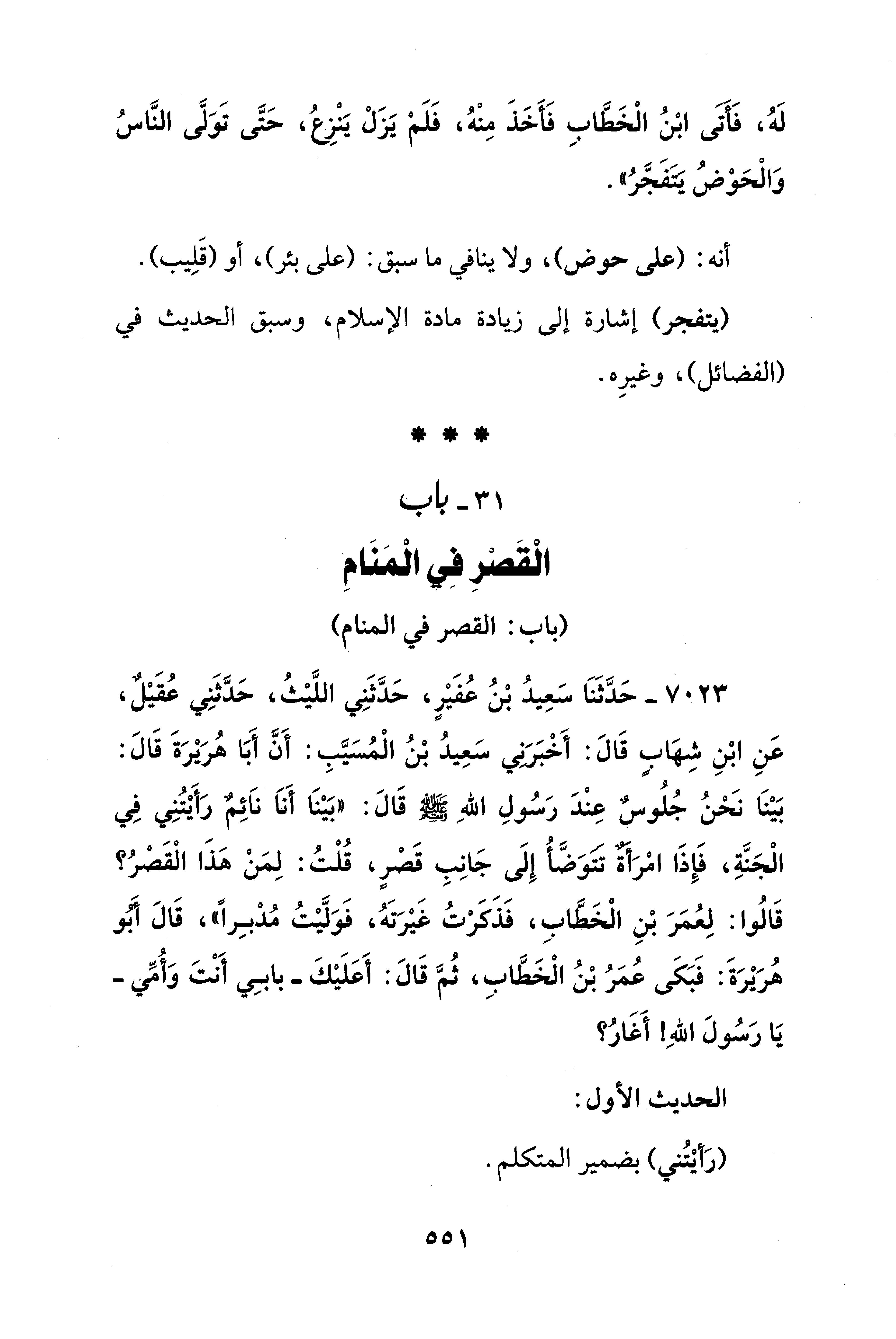 31 - باب الْقَصْرِ فِي الْمَنَامِ