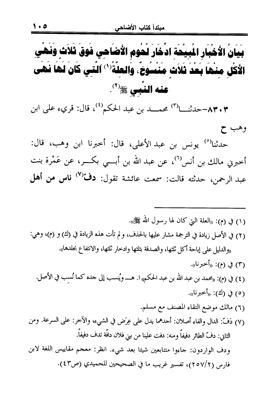 8303 - حدثنا (¬1) محمد بن عبد الحكم (¬2)، قال: قريء على ابن وهب ح