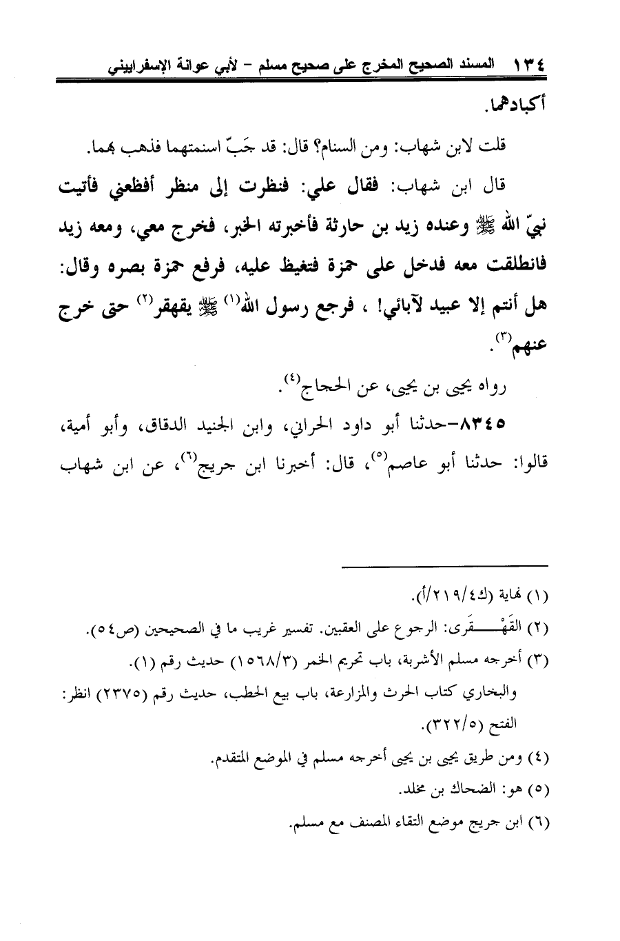 8345 - حدثنا أبو داود الحراني، وابن الجنيد الدقاق، وأبو أمية، قالوا: حدثنا أبو عاصم (¬1)، قال: أخبرنا ابن جريج (¬2)، عن ابن شهاب