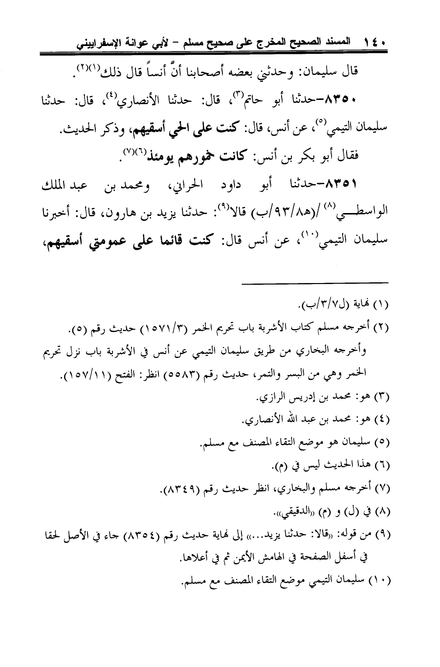 8350 - حدثنا أبو حاتم (¬1)، قال: حدثنا الأنصاري (¬2)، قال: حدثنا سليمان التيمي (¬3)، عن أنس، قال: كنت على الحي أسقيهم، وذكر الحديث.