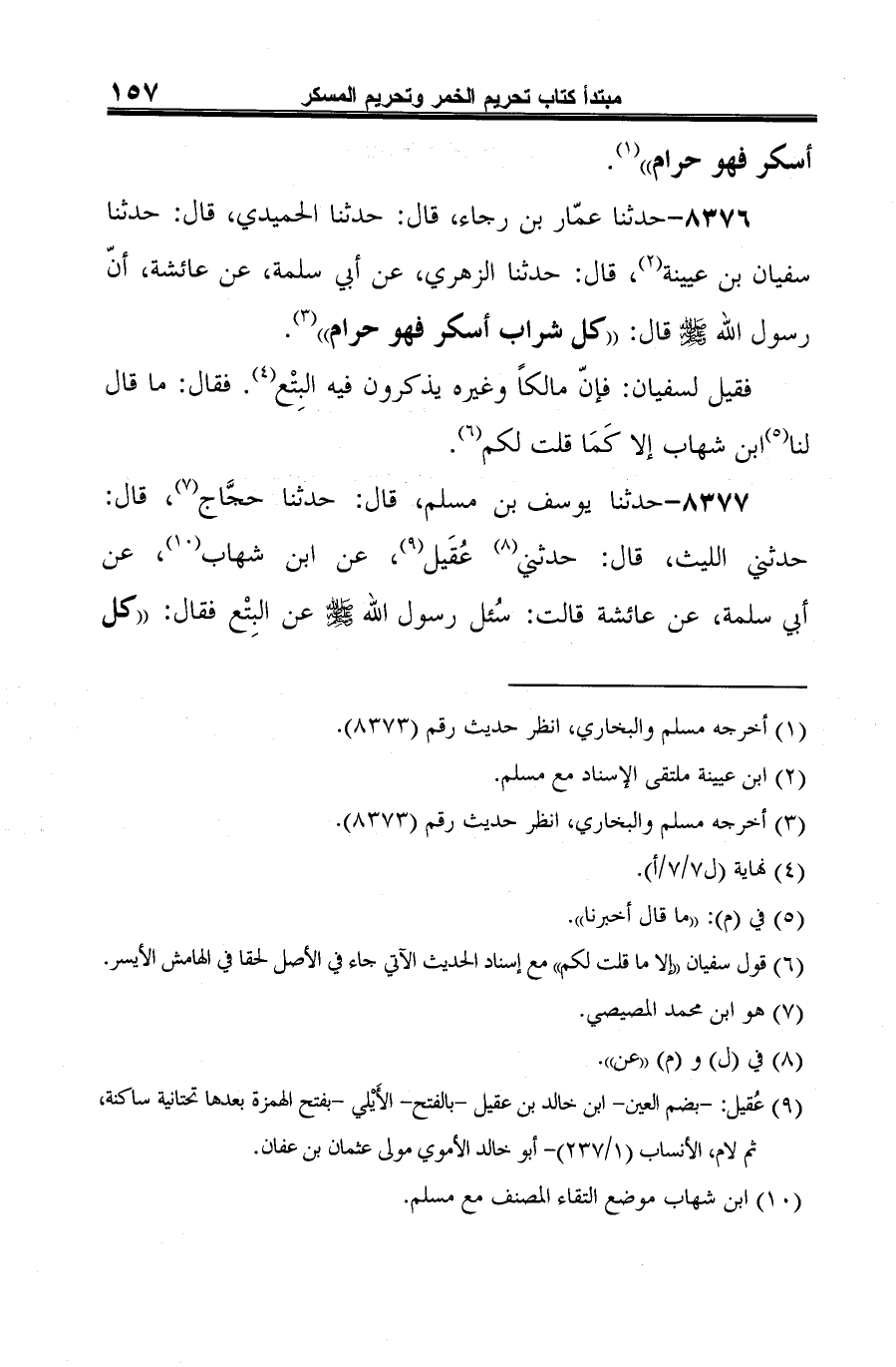 -[158]- شراب أسكر فهو حرام" (¬5).