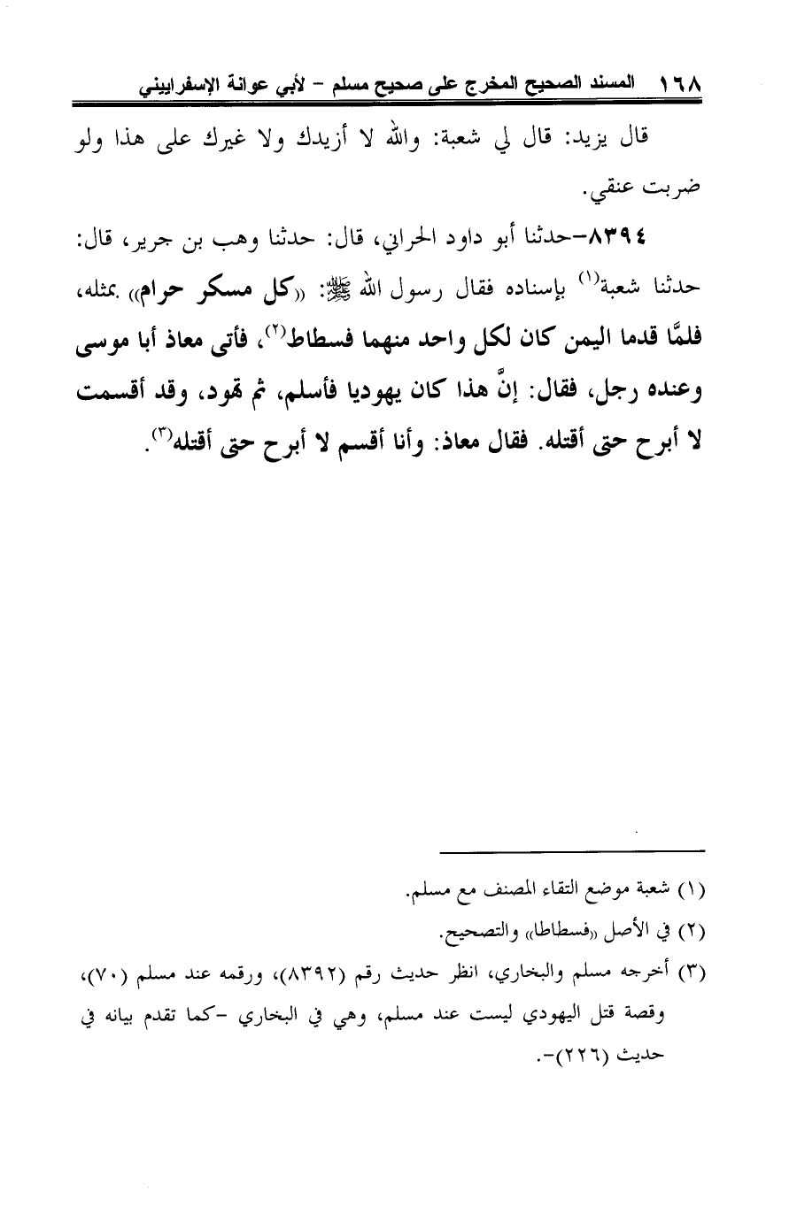 (¬3) أخرجه مسلم والبخاري، انظر حديث رقم (8392)، ورقمه عند مسلم (70)، وقصة قتل اليهودي ليست عند مسلم، وهي في البخاري -كما تقدم بيانه في حديث (226) -.