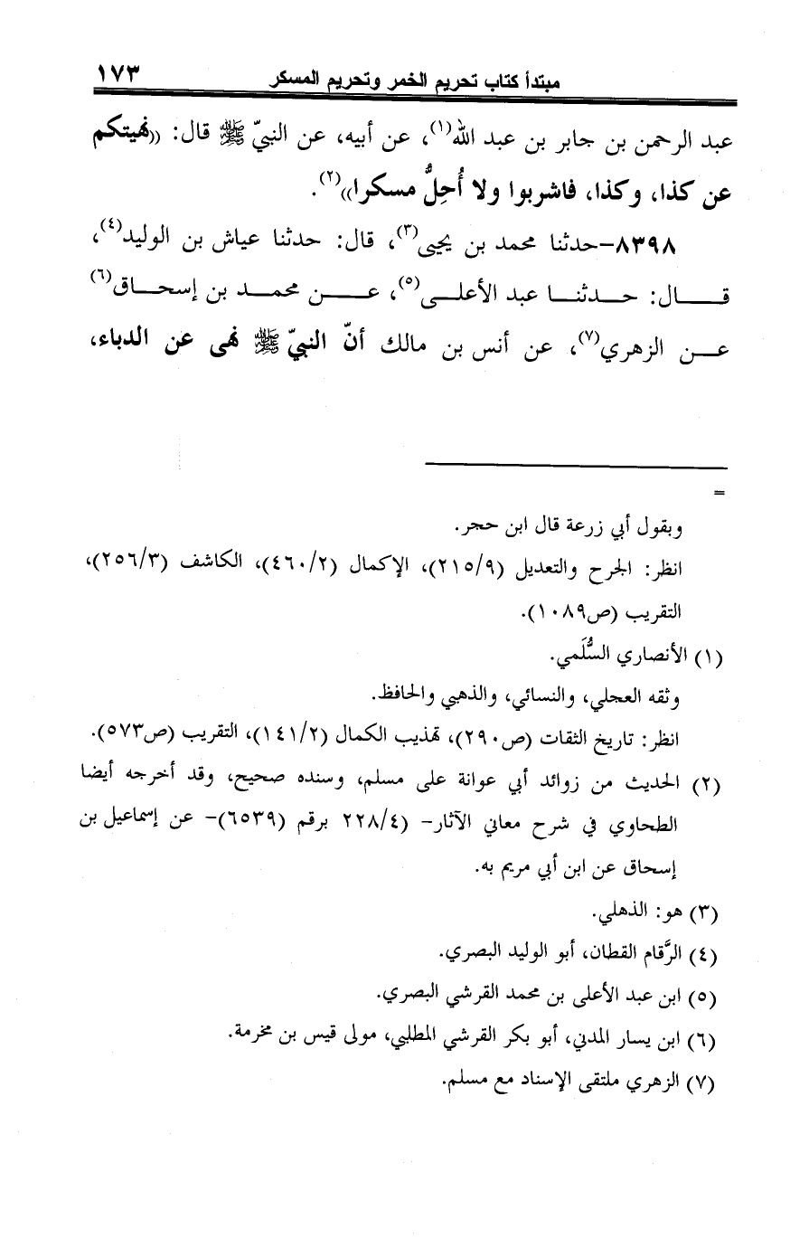 -[174]- والحنتم وقال: "كل مسكر حرام" (¬6).