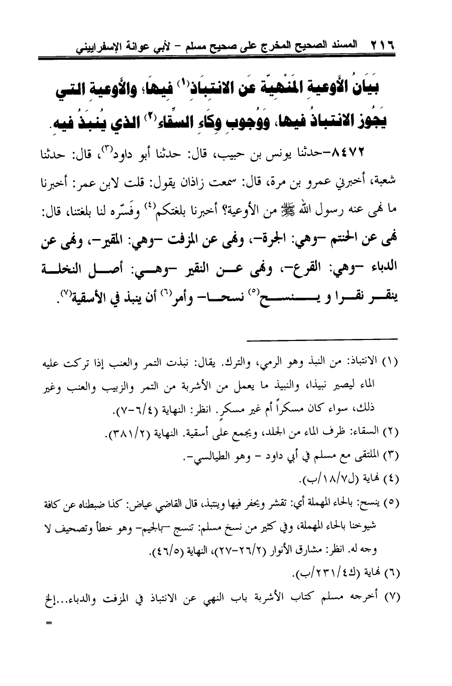 (¬5) أخرجه مسلم كتاب الأشربة باب النهي عن الانتباذ في المزفت والدباء ... إلخ =