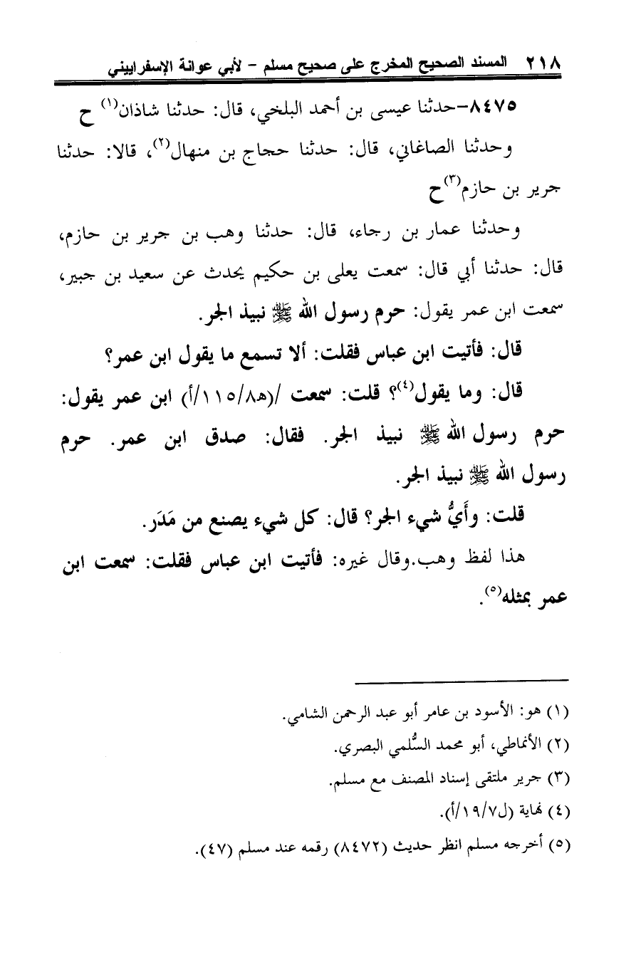 (¬5) أخرجه مسلم انظر حديث (8472) رقمه عند مسلم (47).