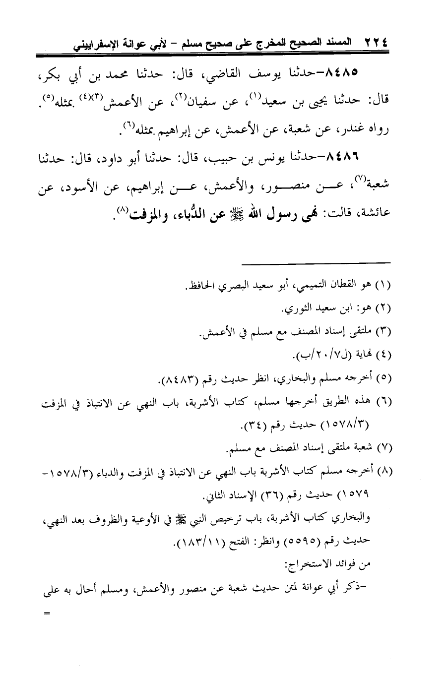(¬6) هذه الطريق أخرجها مسلم، كتاب الأشربة، باب النهي عن الانتباذ في المزفت (3/ 1578) حديث رقم (34).
