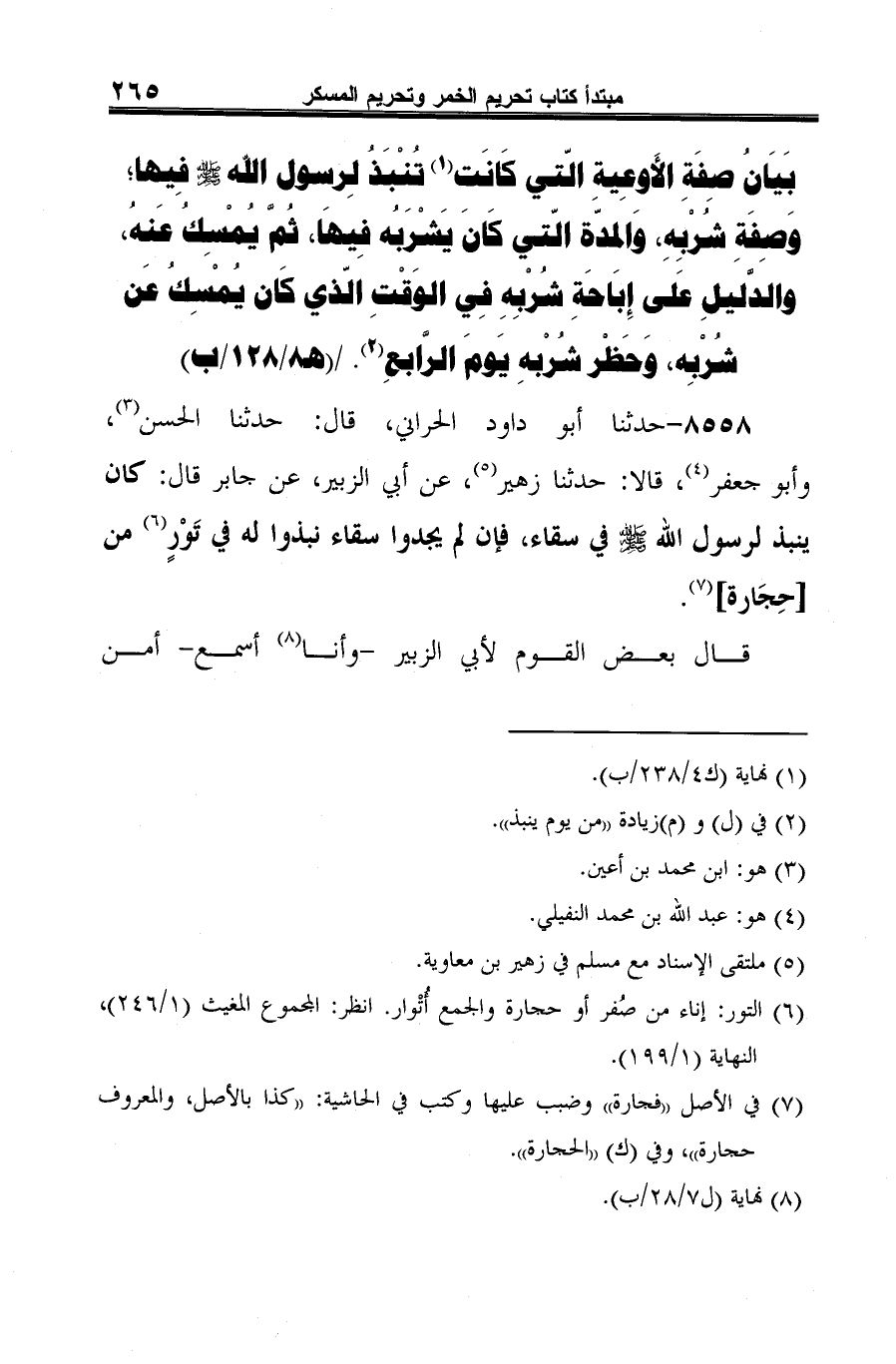 (¬8) أخرجه مسلم، كتاب الأشربة، باب النهي عن الانتباذ في المزفت (3/ 1584) حديث رقم (62).