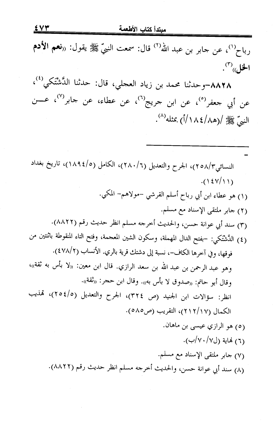 8828 - وحدثنا محمد بن زياد العجلي، قال: حدثنا الدَّشتكي (¬1)، عن أبي جعفر (¬2)، عن ابن جريج (¬3)، عن عطاء، عن جابر (¬4)، عن النبيّ -صلى الله عليه وسلم- بمثله (¬5).