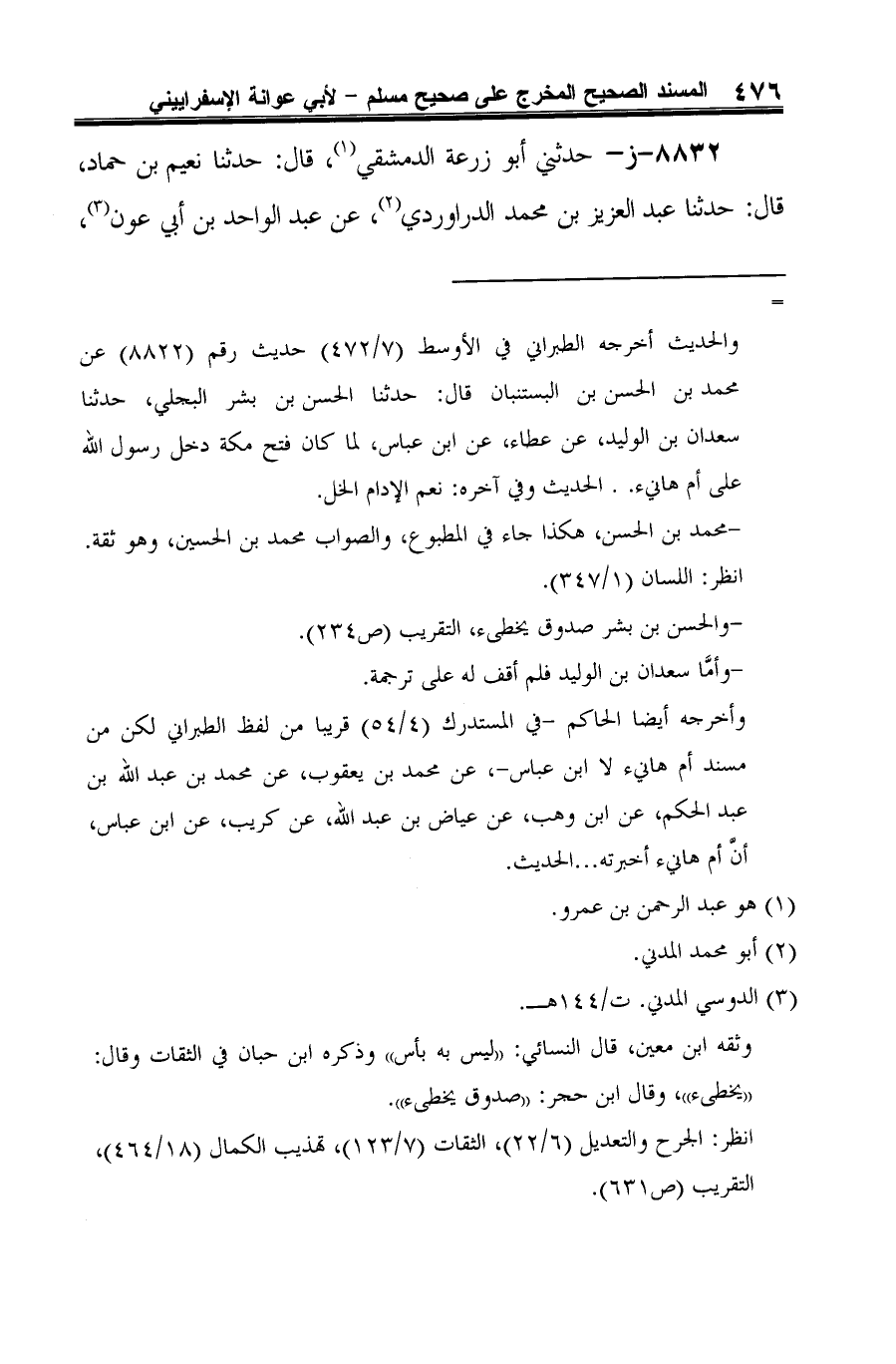 8832 - ز- حدثني أبو زرعة الدمشقي (¬1)، قال: حدثنا نعيم بن حماد، قال: حدثنا عبد العزيز بن محمد الدراوردي (¬2)، عن عبد الواحد بن أبي عون (¬3)،