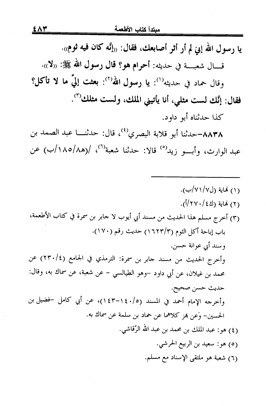 8838 - حدثنا أبو قلابة البصري (¬1)، قال: حدثنا عبد الصمد بن عبد الوارث، وأبو زيد (¬2) قالا: حدثنا شعبة (¬3)، عن