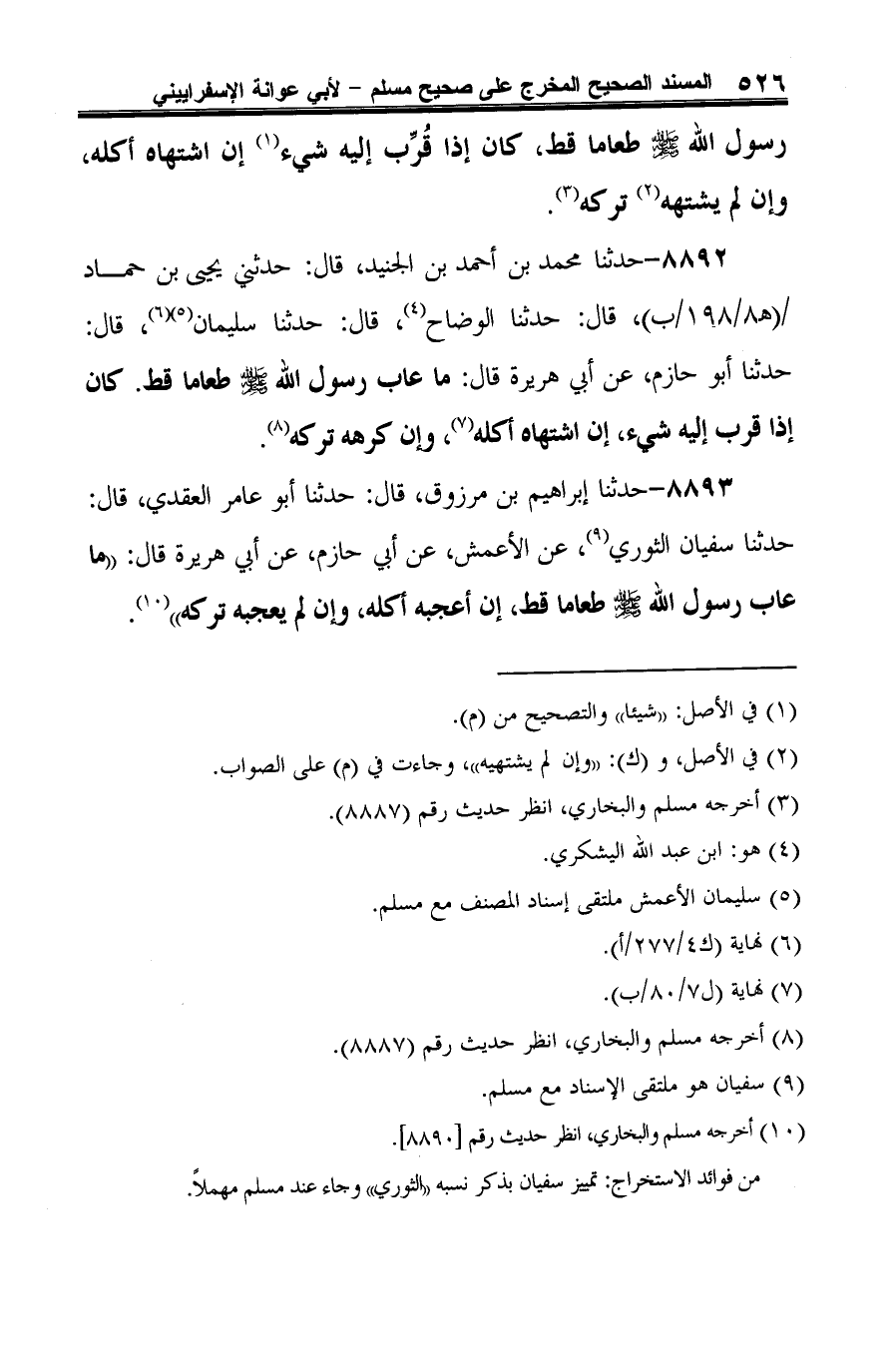 8892 - حدثنا محمد بن أحمد بن الجنيد، قال: حدثني يحيى بن حماد، قال: حدثنا الوضاح (¬1)، قال: حدثنا سليمان (¬2) (¬3)، قال: حدثنا أبو حازم، عن أبي هررة قال: ما عاب رسول الله -صلى الله عليه وسلم- طعامًا قط. كان إذا قرب إليه شيء، إن اشتهاه أكله (¬4)، وإن كرهه تركه (¬5).