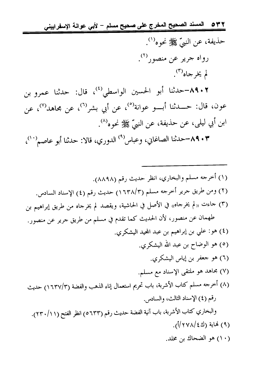 8902 - حدثنا أبو الحسين الواسطي (¬1)، قال: حدثنا عمرو بن عون، قال: حدثنا أبو عوانة (¬2)، عن أبي بشر (¬3)، عن مجاهد (¬4)، عن ابن أبي ليلى، عن حذيفة، عن النبيّ -صلى الله عليه وسلم- نحوه (¬5).